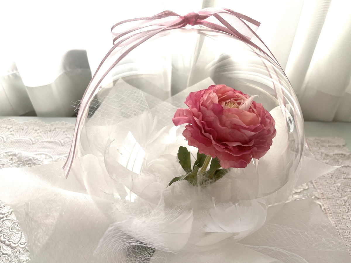 羽根が薔薇の中央に刺さってて、そこから羽根が生えてくるようでかわいいです〰️😍💕💕