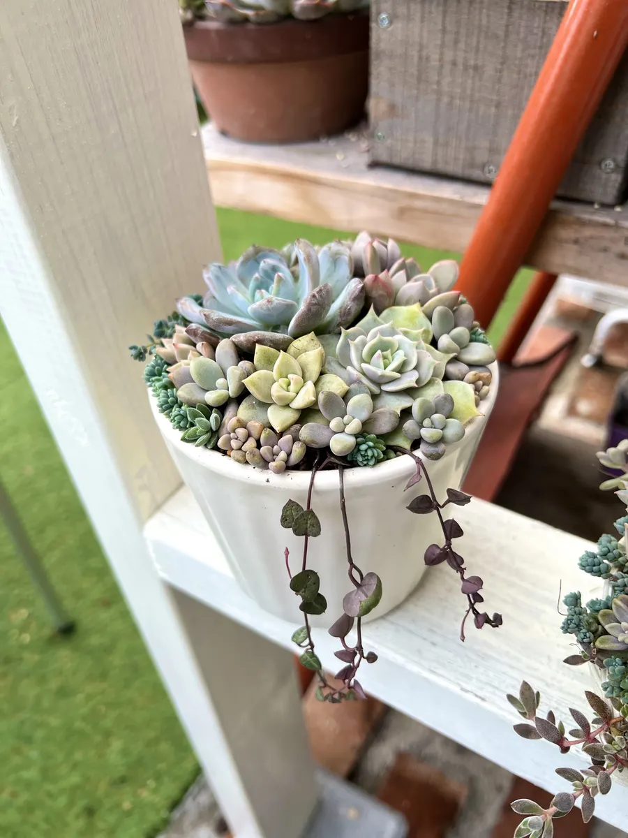 トップ > グリーン > キャンペーン > アンティーク寄せ植え さくら♡ 2025/11/05 14:15 アンティーク寄せ植え Tagさん ■作品内容 お家の苗で寄せ植え♪ ■工夫ポイント ハートカズラを使って、アンティークで乾いた感じの寄せ植えにしてみました♡ なかなか思うような感じには仕上がらないね💦 多肉作品部門【2025】 いいね 共有する 共有する X LINE リンクをコピー コメントする 2 件の返信 (新着順) ミュートしたユーザーの投稿です。 投稿を表示 yuco 2025/11/05 17:27 素敵💓 垂れ下がる🌱プラスするだけで、いい感じにまとまりますよね〜 すぐに取り入れるさくら♡さん、さすがです👏 私もマネっこしてみてもいいですか? 園芸屋さんにハートカズラ💚売ってるかな? いいね 返信する ミュートしたユーザーの投稿です。 投稿を表示 さくら♡ 2025/11/05 20:42 yuco 全然、どうぞ♡ アタシもTagさんの真似っこよ笑😆 良いなと思うのはどんどん取り込みましょ💕 ちょうど今、ハートカズラもホムセンとかでいっぱい売ってるよ❣️ いいね 返信する ミュートしたユーザーの投稿です。 投稿を表示 yuco 2025/11/05 21:02 さくら♡ さくら♡さん、ありがとう💕 ハートカズラ、今、売っているのですね 明日も行っちゃうかなぁ〜園芸屋さん また何やら連れて帰ってきちゃいそうだわ🤣 いいね 返信する ミュートしたユーザーの投稿です。 投稿を表示 さくら♡ 2025/11/05 21:30 yuco 危険な香りがするわ笑🤣 いいね 返信する ミュートしたユーザーの投稿です。 投稿を表示 Tagさん 2025/11/05 14:37 カワイイ😍💕アンティークな色でまとまってて素敵💕 ハートカズラ入ると可愛さ増しますね~♥ いいね 返信する ミュートしたユーザーの投稿です。 投稿を表示 さくら♡ 2025/11/05 15:08 Tagさん Tagさんの可愛い寄せ植えを見てハートカズラ入れてみましたよ🤭 家にある苗で作ろうと思うと難しいね💦 いいね 返信する ミュートしたユーザーの投稿です。 投稿を表示 Tagさん 2025/11/05 17:41 さくら♡ やっぱりワークショップのは講師の方が計算して苗準備してくれてるから可愛くなるよねー💕 ハートカズラもう少し伸びたら縁の近くの子たちに引っ掛けて横に這わせても可愛くていいかもね〜🥰💕 いいね 返信する