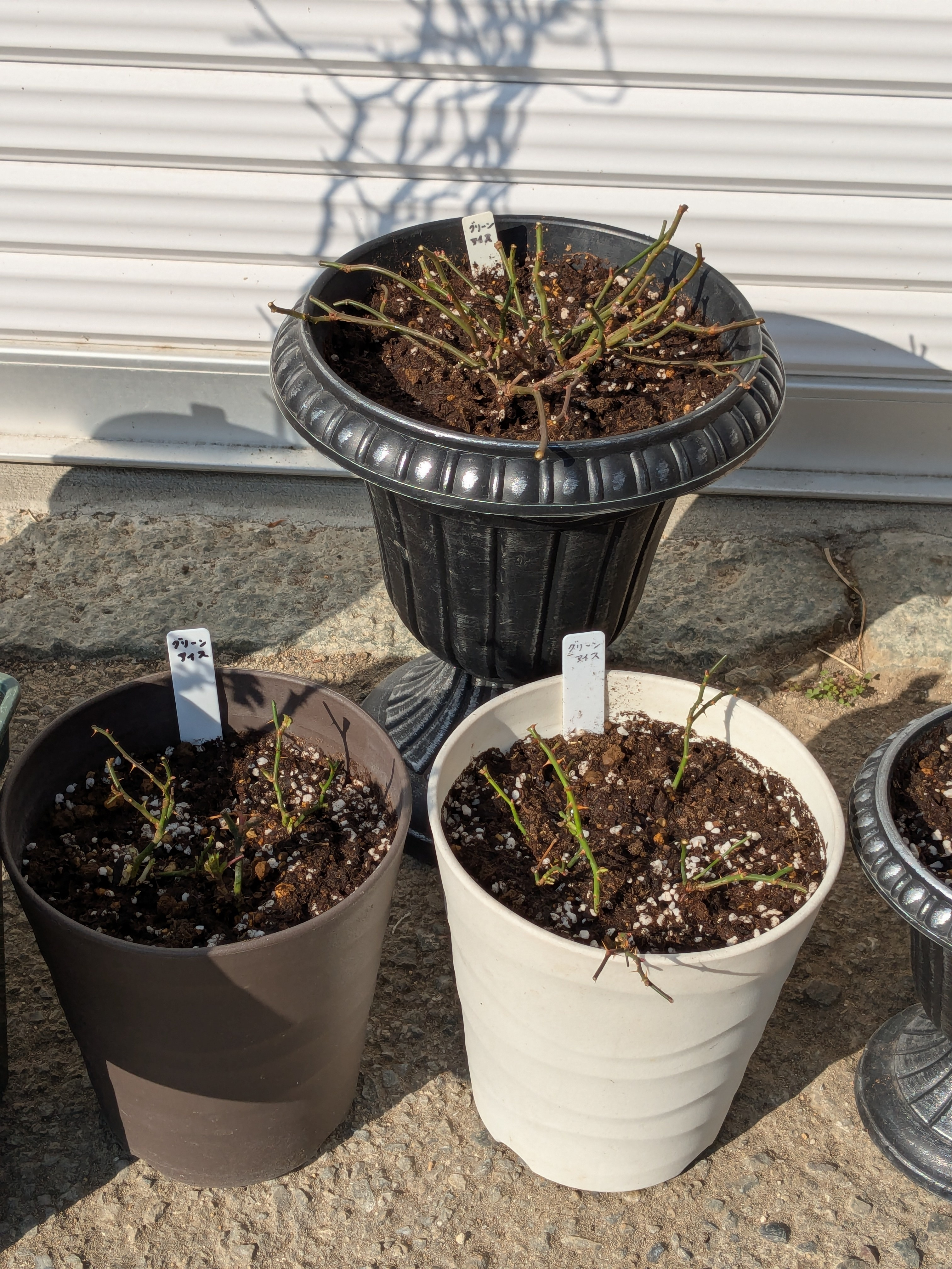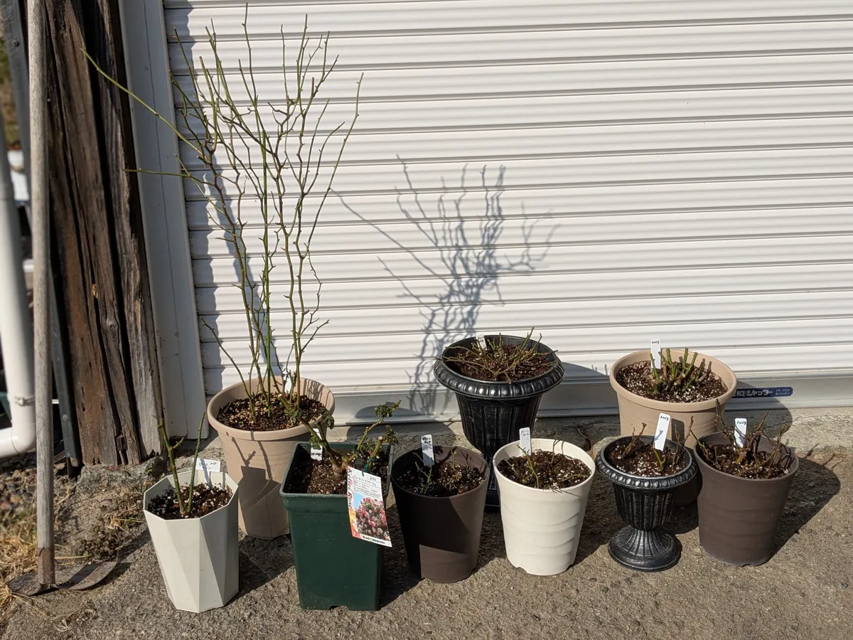 バラとミニバラ、全部の鉢剪定と植え替え終わりました〜🤗🎶