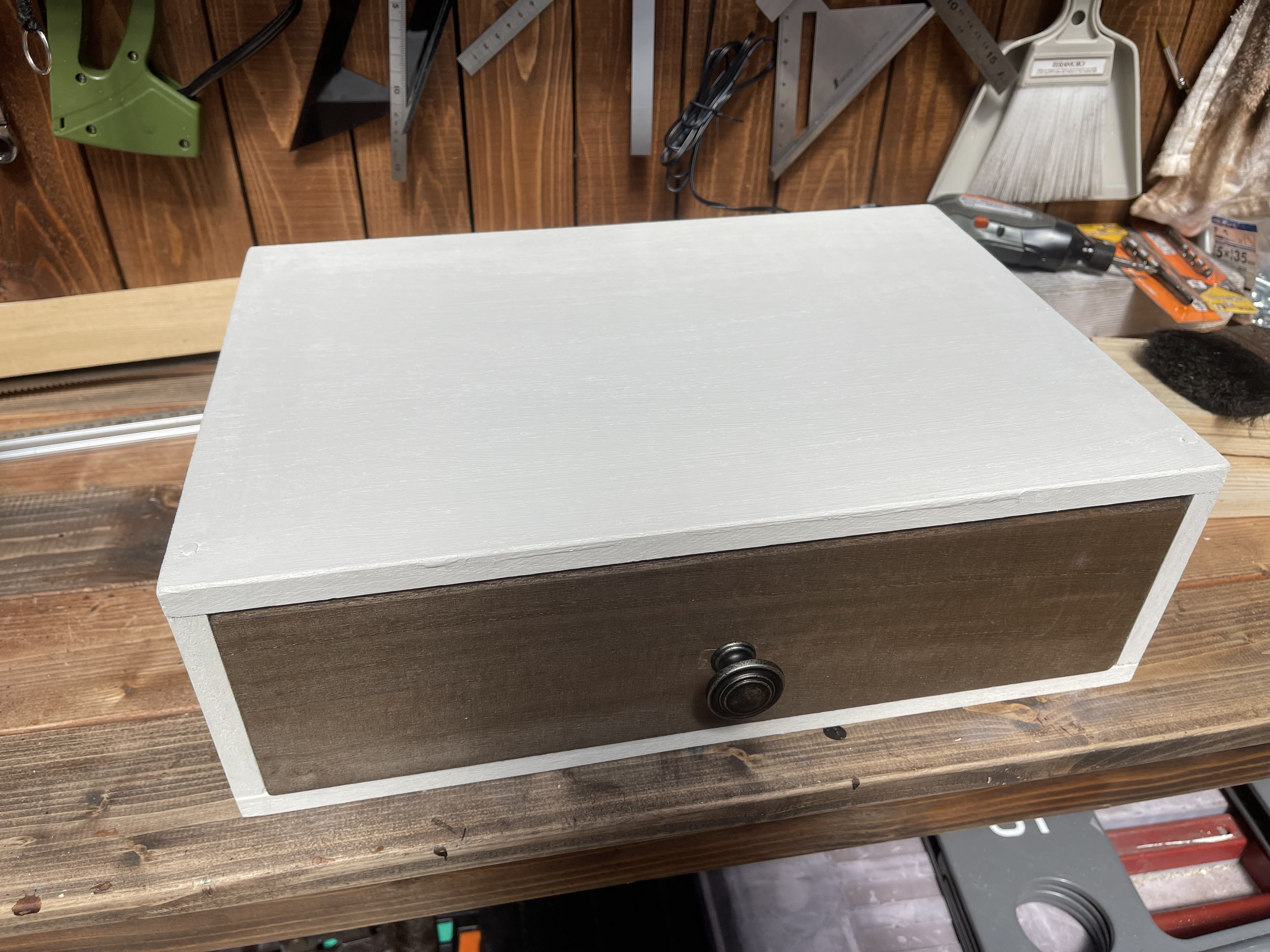 トップ > DIY > インテリア > 初めての引出し作り kozy 2022/04/05 17:35 初めての引出し作り 初めて引出しをつくりました。参考にしてサイズ違いなども作ってみたいと思います。 いいね 共有する 共有する X LINE リンクをコピー コメントする 5 件の返信 (新着順) ミュートしたユーザーの投稿です。 投稿を表示 かとち 2022/04/06 06:46 引き出しのWSはどうしようかなと考えているうちに、満席になってました😥 ステキな作品を見ると、頑張って予約を入れたくなります😊 いいね 返信する ミュートしたユーザーの投稿です。 投稿を表示 kozy 2022/04/08 15:53 ありがとうございます😊やはり人気のある教室は直ぐに埋まってしまうみたいですね。 頑張って予約してみて下さいね👍楽しかったですよ。 いいね 返信する ミュートしたユーザーの投稿です。 投稿を表示 anemone 2022/04/05 23:21 これ!!作りたい引き出しです! 前のところはツライチですか? 先日、工房で聞いた話では、寸法が少し変更になって全面がツライチじゃなくて変ってことだったんですか💦 これ可愛くて何個か作って重ねたいと思います! ツートンの色合いもすてきです!! いいね 返信する ミュートしたユーザーの投稿です。 投稿を表示 kozy 2022/04/08 15:51 ありがとうございます😊是非是非挑戦してみて下さいね。 いいね 返信する ミュートしたユーザーの投稿です。 投稿を表示 しょうしん 2022/04/05 23:04 こちらの作品作るのが難しいですよね。 四角をきちんと作らないと引き出しがピッタリと入らないですし。 色合いも素敵ですね。 サイズ違いの作品の投稿を楽しみにしていますね。 いいね 返信する ミュートしたユーザーの投稿です。 投稿を表示 kozy 2022/04/08 15:49 ありがとうございます😊穴あけをキッチリとしないとネジが横から出たりして少し大変でしたが、親切に指導して頂き助かりました😊 いいね 返信する ミュートしたユーザーの投稿です。 投稿を表示 べるん 2022/04/05 21:03 とても素敵ですね✨ 色合いもシックで良いですね😄 いいね 返信する ミュートしたユーザーの投稿です。 投稿を表示 kozy 2022/04/08 15:47 ありがとうございます😊参考にしてサイズ違いも作ってみようかと思います。 いいね 返信する ミュートしたユーザーの投稿です。 投稿を表示 豆うさぎ♪ 2022/04/05 18:52 この色の組み合わせ、とても素敵です😄💓 ピッタリ入るように作るの難しそうで、まだ作った事ない引き出しですが、チャンスがあったら挑戦してみようかなぁ😉✨ いいね 返信する ミュートしたユーザーの投稿です。 投稿を表示 kozy 2022/04/08 15:45 ありがとうございます😊是非是非挑戦してみて下さいね。 いいね 返信する