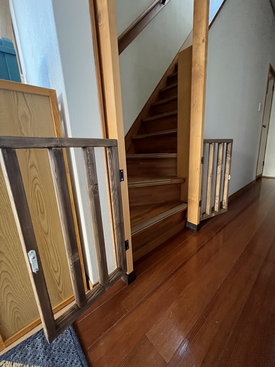 トップ > DIY > インテリア > 子供用階段ガード 甘いもの好き 2022/07/24 07:53 子供用階段ガード 子供用階段ガードを作りました。取り外しができるように2x4材を柱にし、垂木でガードとしました。打掛は階段側につけ、簡単に開けられない?ようにしました。 いいね 共有する 共有する X LINE リンクをコピー コメントする 2 件の返信 (新着順) ミュートしたユーザーの投稿です。 投稿を表示 calypso 2022/07/24 10:01 これはいいですね。☺️ 家に傷をつけないからお子様が成長したら取り外しできるし本当に良い😊 甘いもの好きさんのアイディア私も使わせて頂きたいです☺️ いいね 返信する ミュートしたユーザーの投稿です。 投稿を表示 ホームズ 2022/07/24 08:17 甘いもの好きさん アイデア、凄いです😱💦 まさか、階段で使うとは😱💦 その発想は、なかったです😂💦 リマルテですか? 柱とか気にせず、思いっきり、蝶番とか使えますよね🥰👍 お子さんへの愛情がヒシヒシと伝わってくるステキなDIYですね🥰💕 投稿、ありがとうございました🤗 いいね 返信する