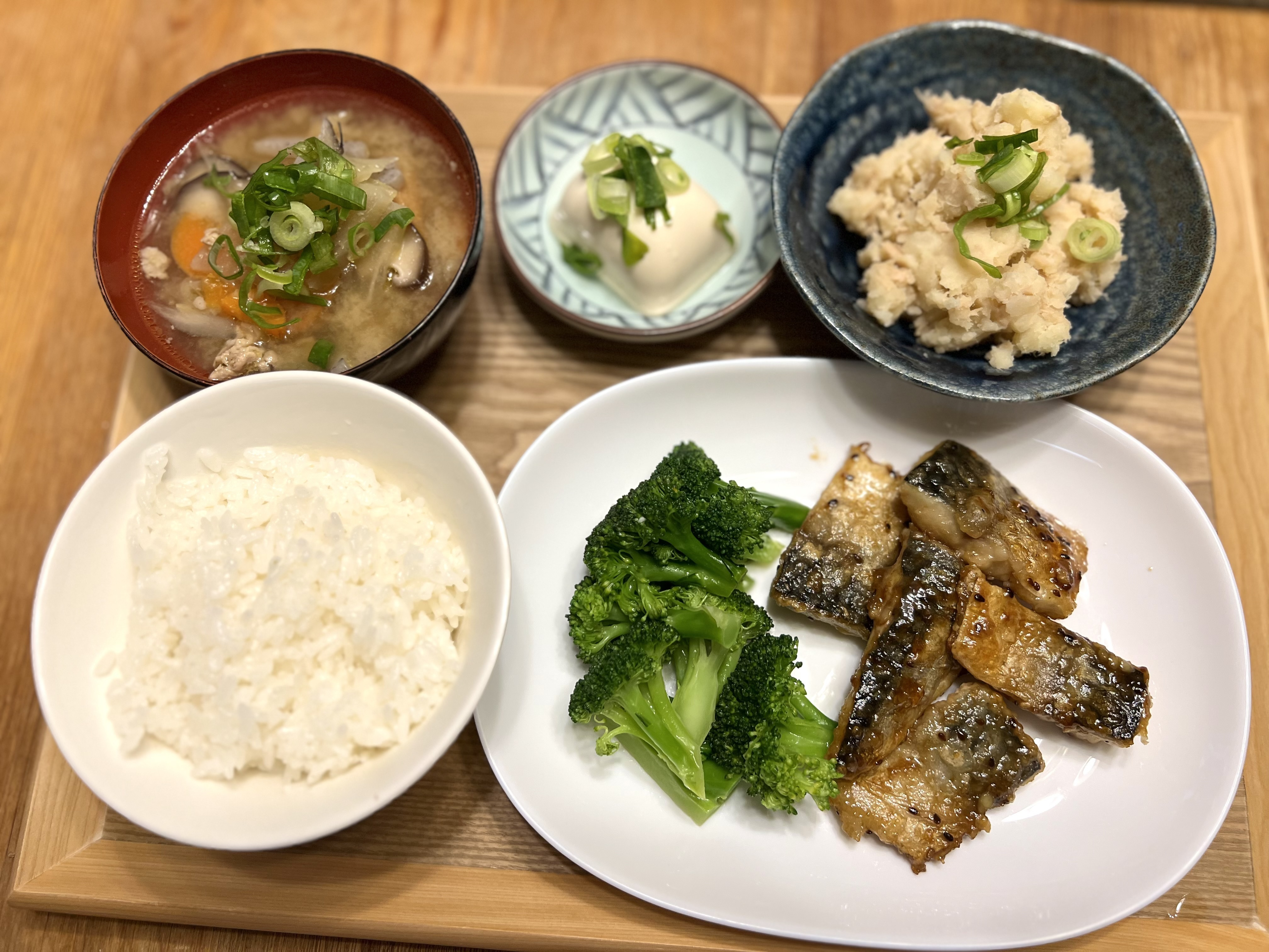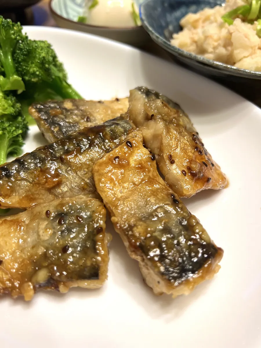 サバのマヨポン焼き、無限♾️じゃがいも、ブロッコリーのオリーブオイル白だし蒸し、冷奴です💕