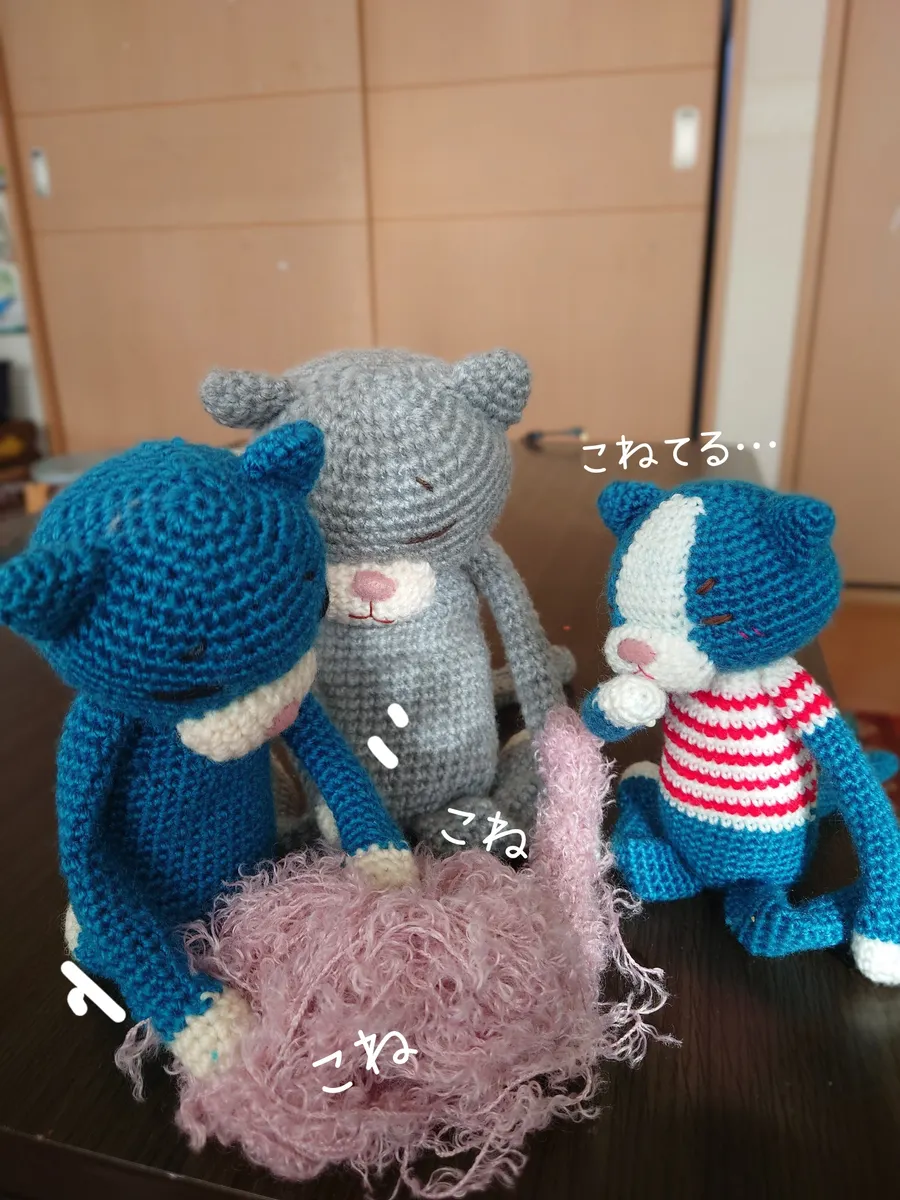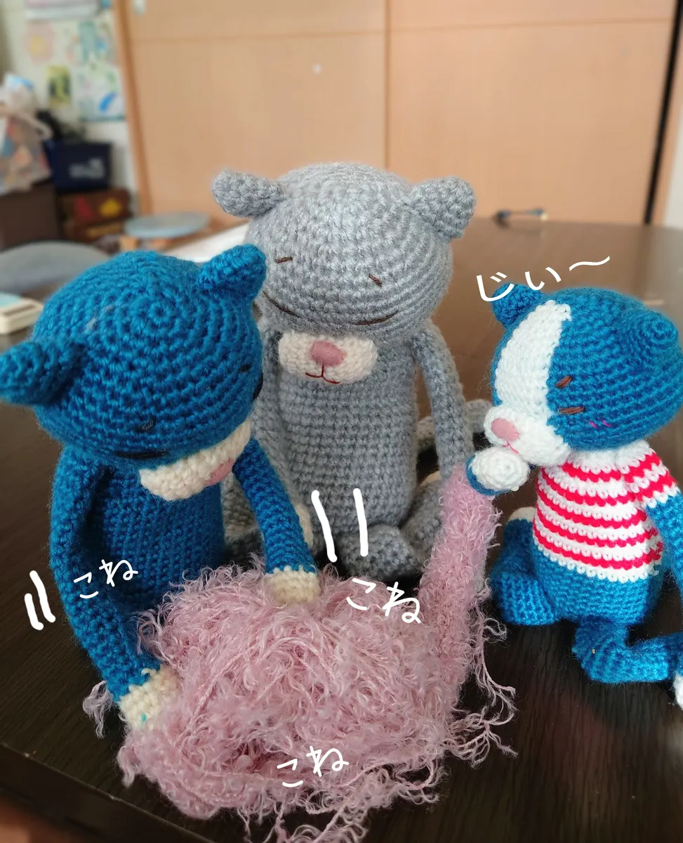 この、こねこねしてる毛糸は編む時編み目がぁ~~😣となりそう