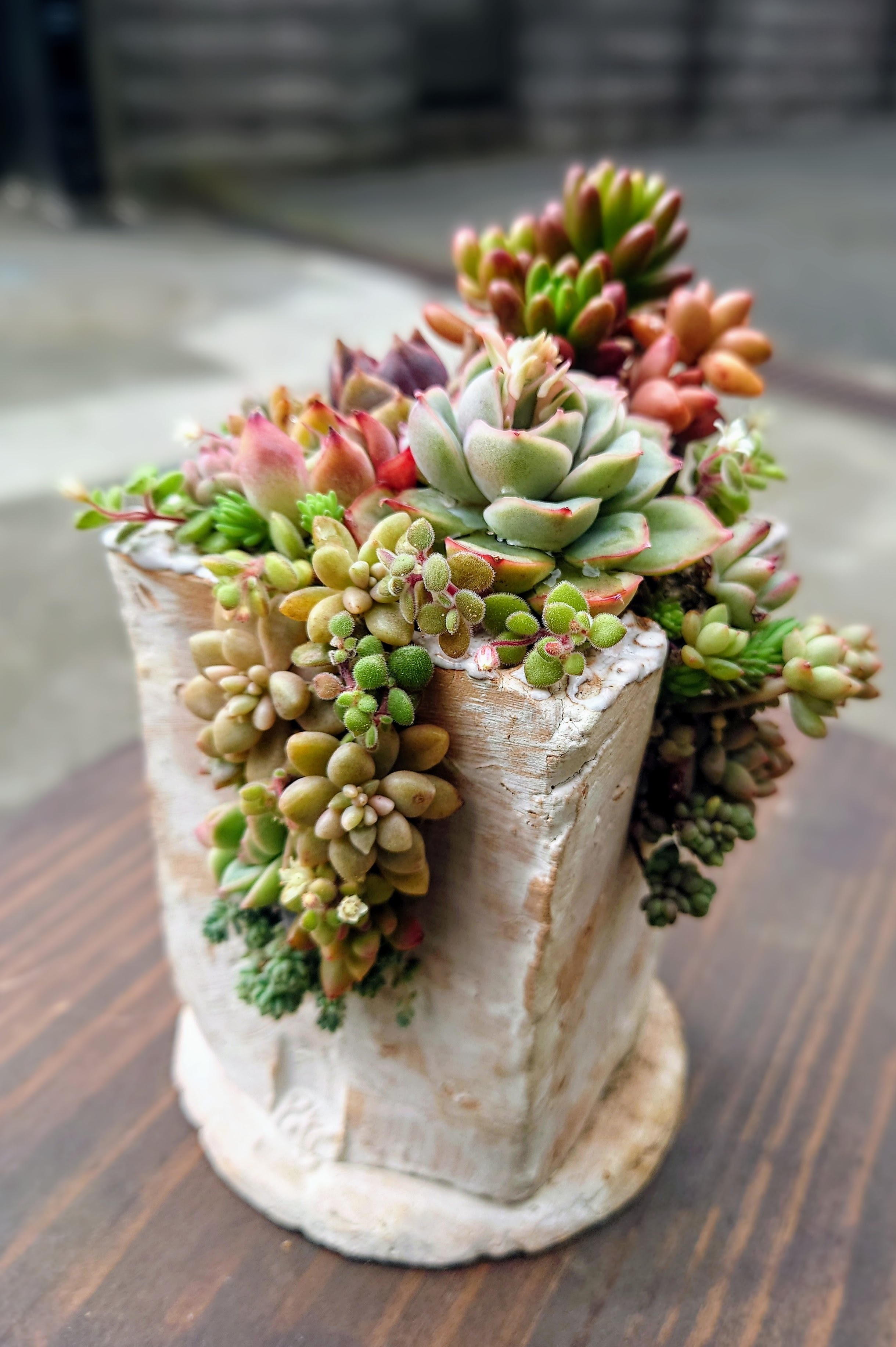 スリットの部分は茎の長めの多肉をジグザグに植えていきスリットの隙間部分には土がこぼれないようボリュームのあるセダムをいれました