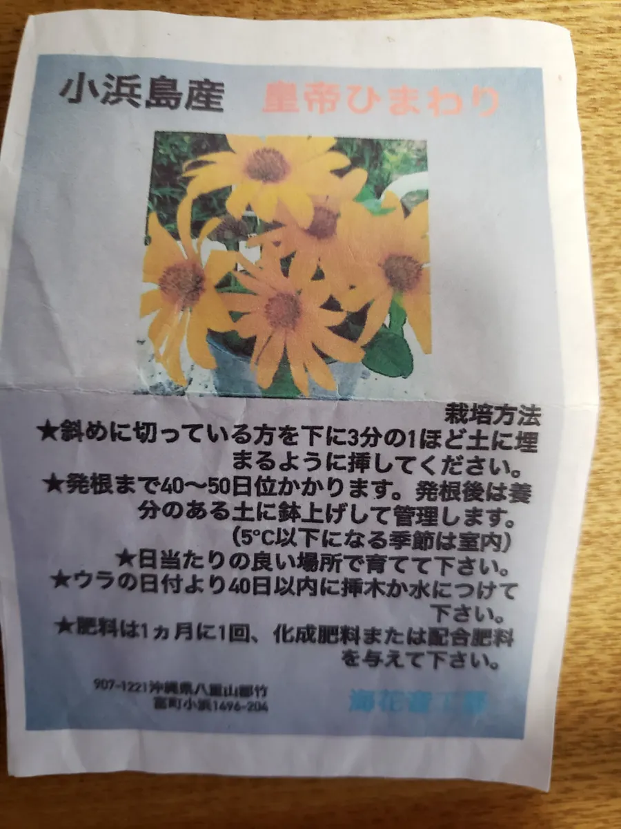 トップ > グリーン > その他 > 皇帝ひまわり🌻 ミレ 2025/11/29 10:45 皇帝ひまわり🌻 4月に沖縄に行った時、小浜島の港の売店で買った皇帝ひまわり🌻が、やっと咲きました🎶 初めて聞いたひまわりなので、どんな感じなのか興味津々でした。 高さは2m50cm位になりました。 上を向いて咲くので、花が良く見えなくて残念😅 植える前の苗の写真を撮っておけばよかったけど、直径1センチ長さ5センチくらいの棒状でした。 皇帝ダリアと同じで、霜が降りると枯れてしまいそうです😅 いいね 共有する 共有する X LINE リンクをコピー コメントする 0 件の返信 (新着順)