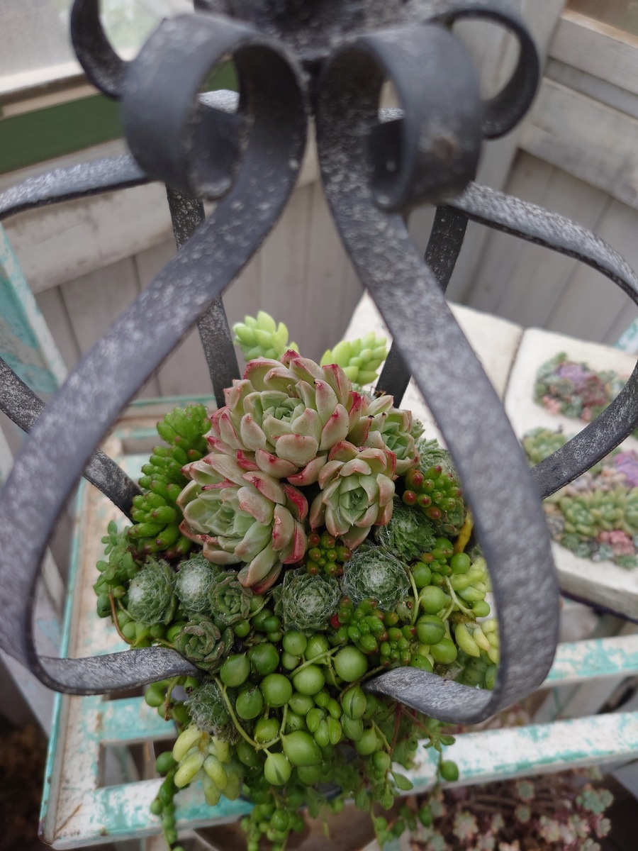 後ろのセダム寄せも可愛い。