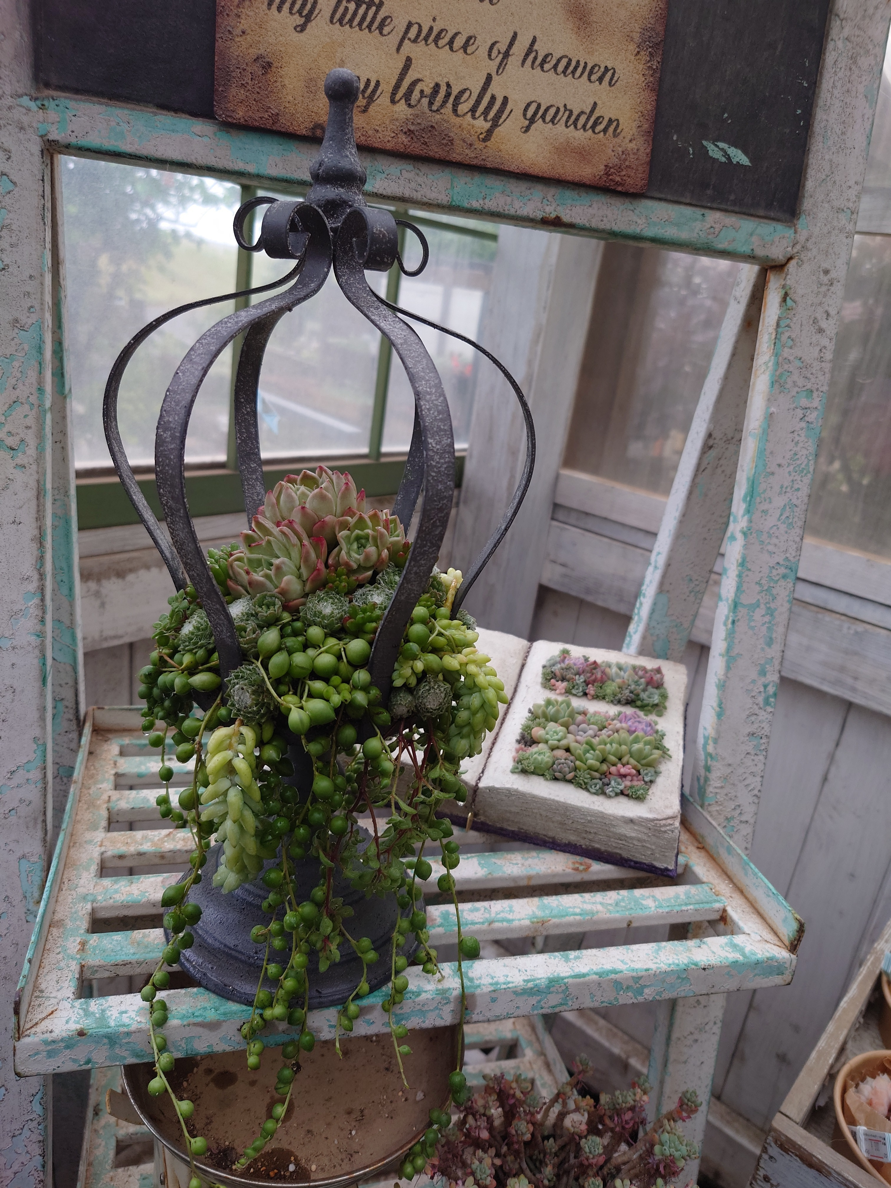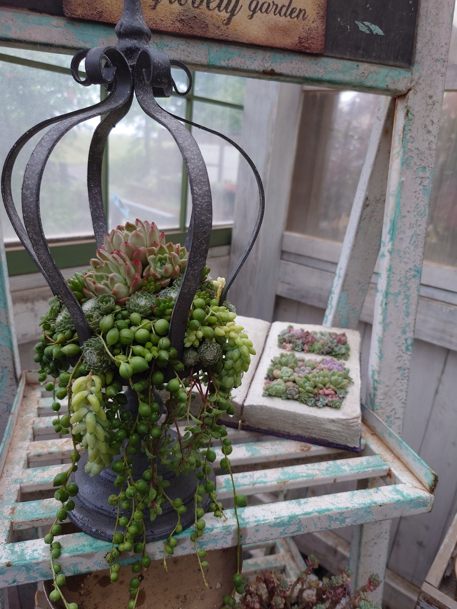 後ろのブック型の寄せ植えも素敵🥰