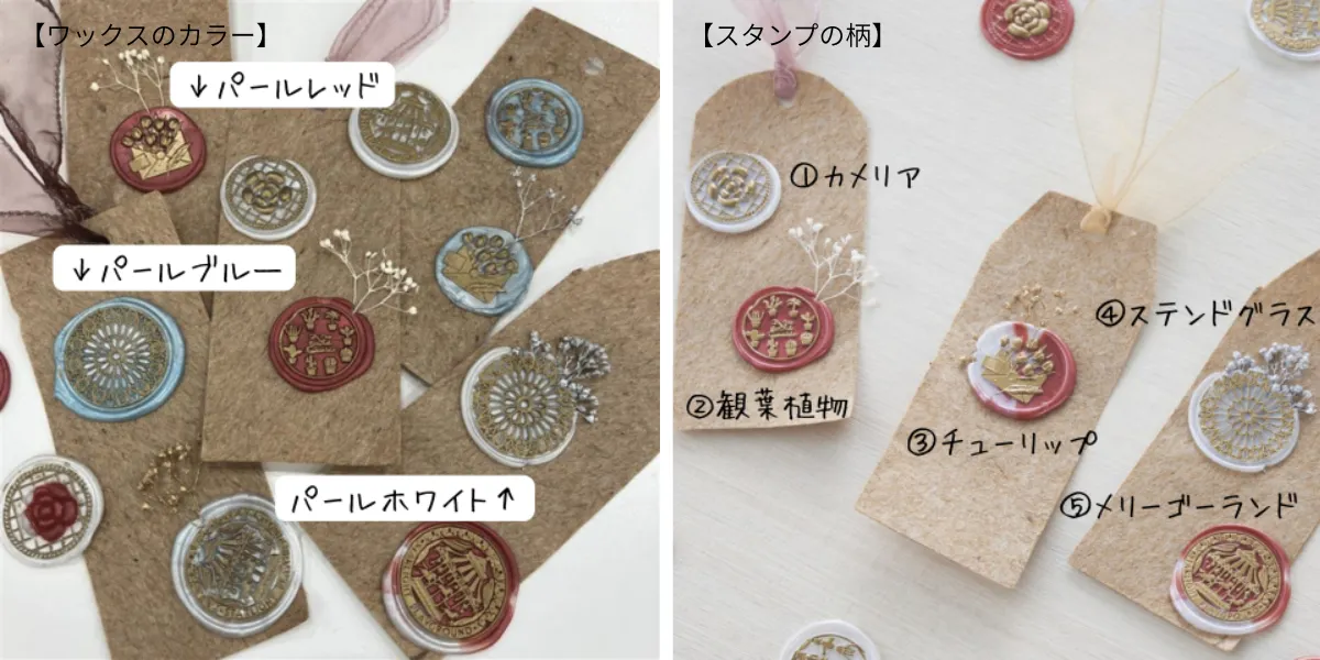 「グルーガン用」のシーリングワックスを使い、お好きな柄で〈5回〉スタンプいただけます。