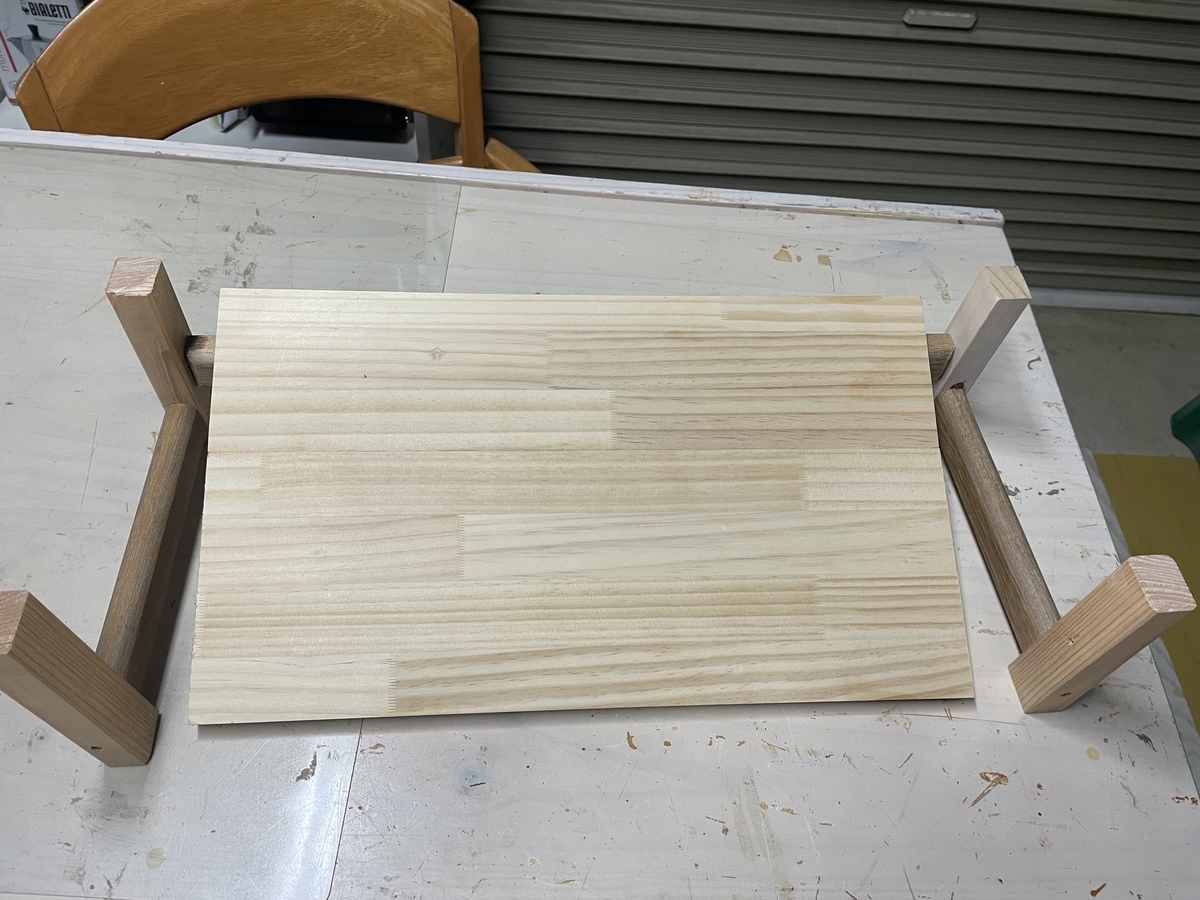 天板はリビングで接着中なので写真は土台からです。