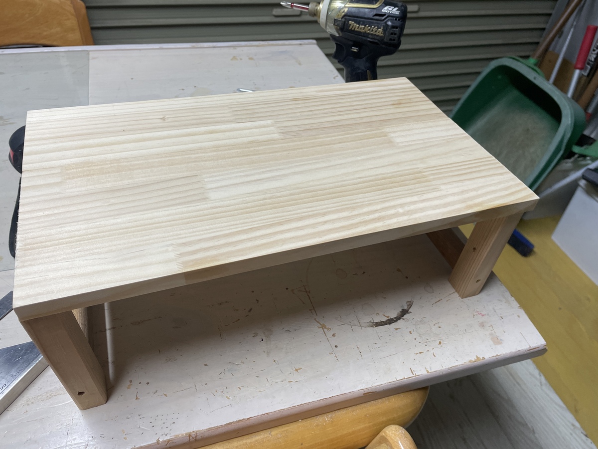 余ってる材料で作ってるので右奥の脚が少しサイズが異なりますが奥なので気にしません。笑笑