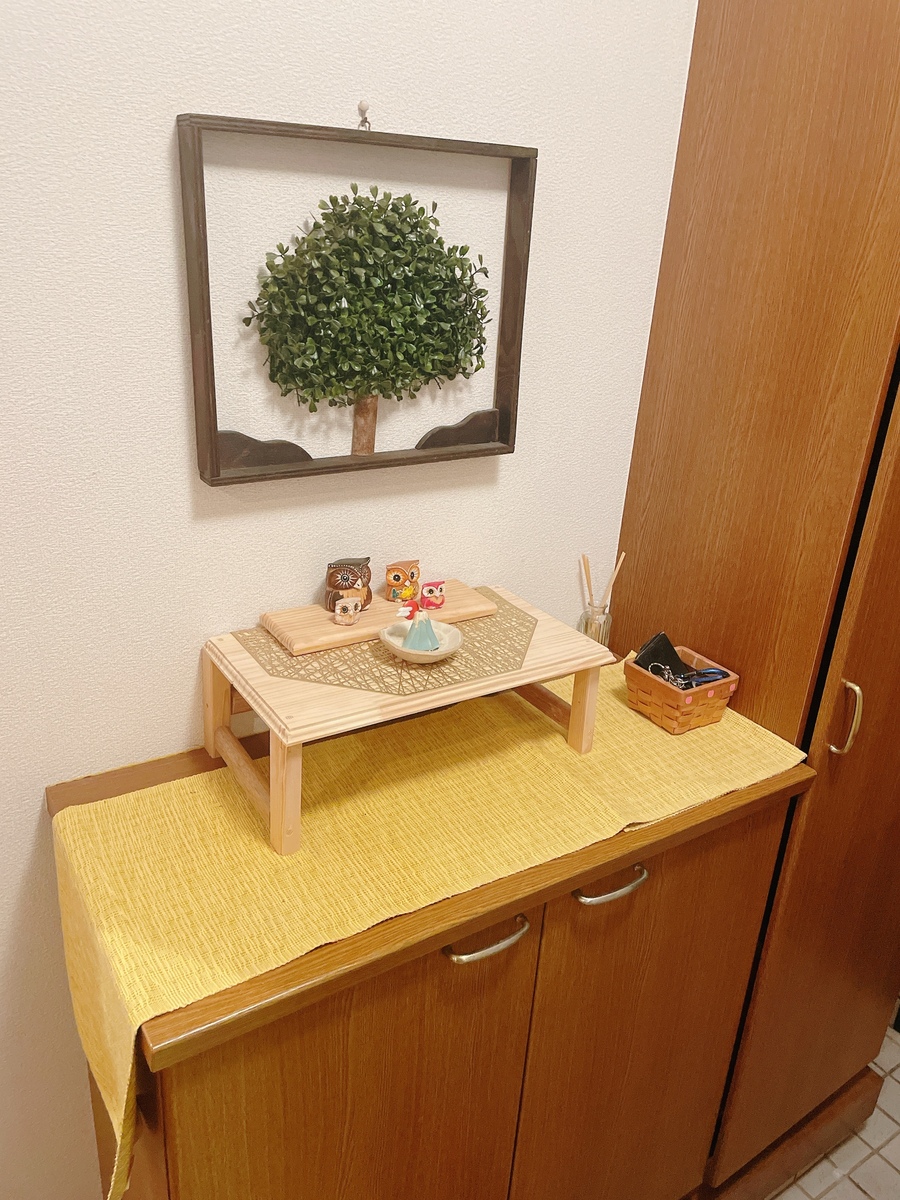 本当はここに鏡餅を置いて飾りますが、まだ先なので近くにあるものをちょっと置いてみました。