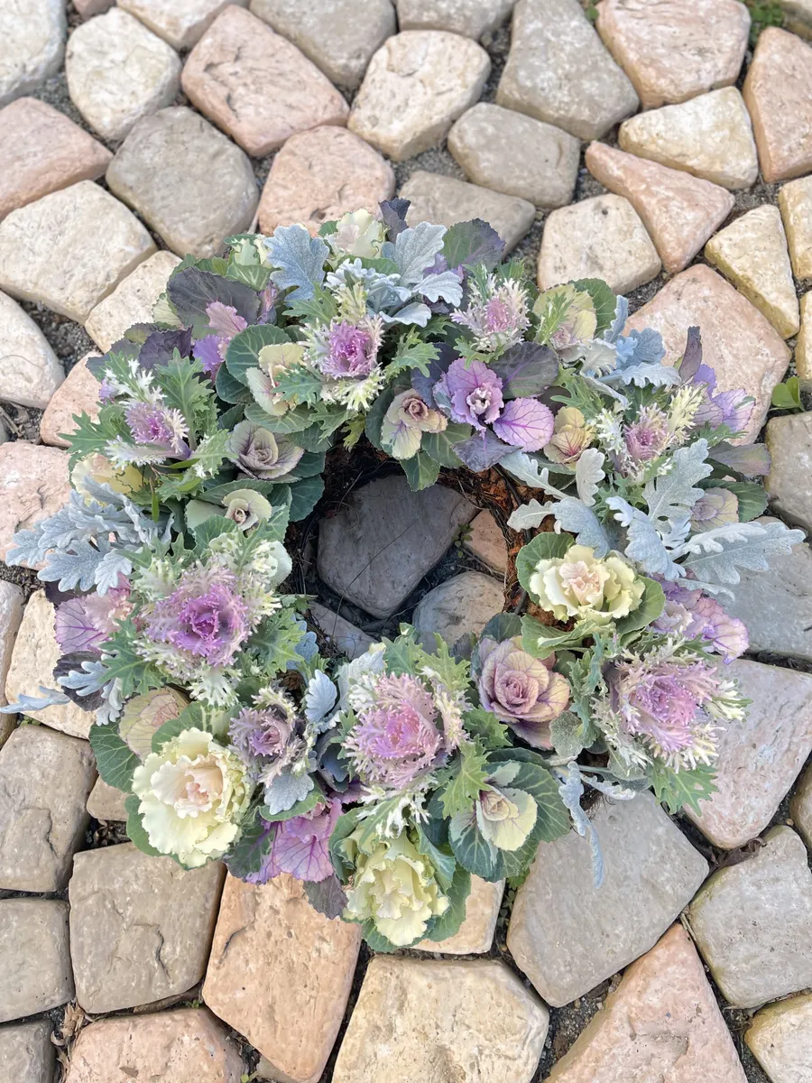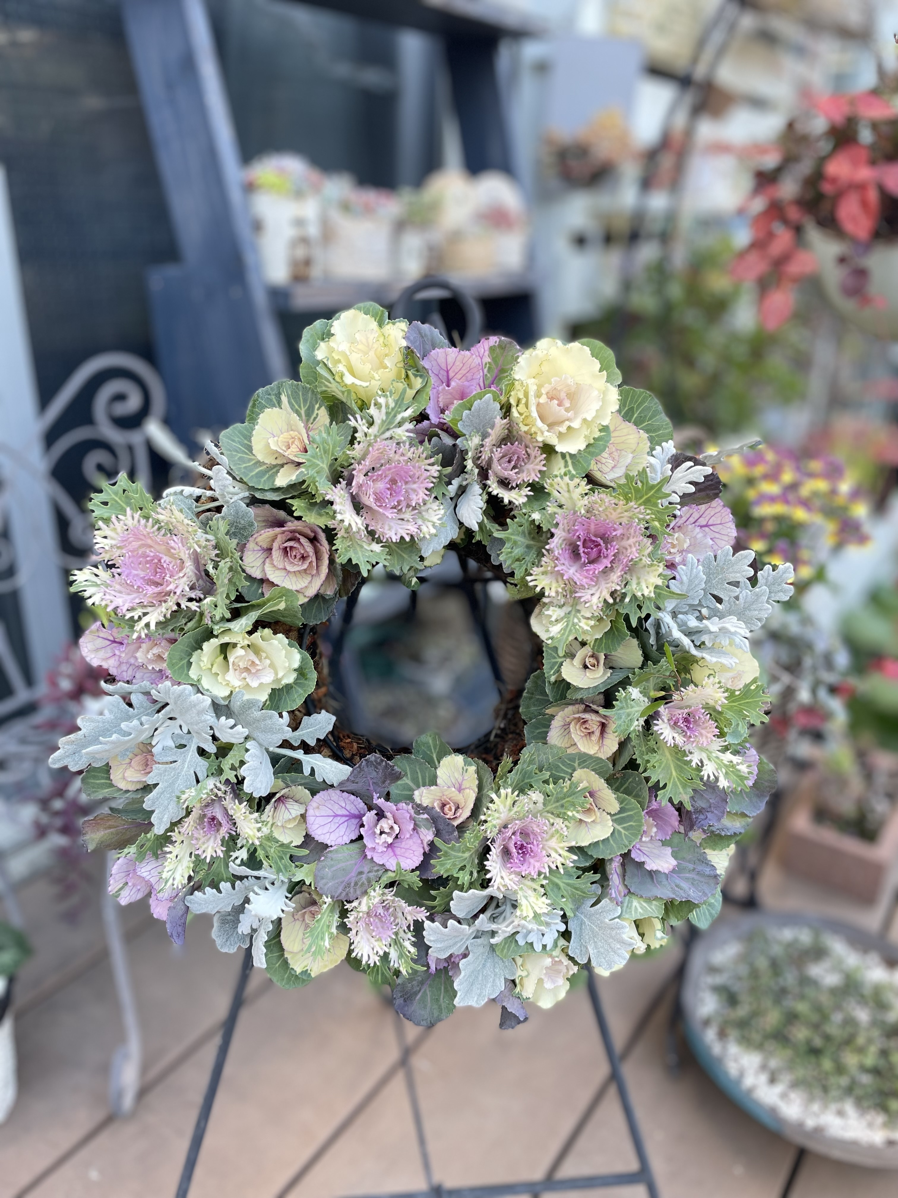 投稿を表示優しい色合いの葉牡丹!すてきなリースですね〜