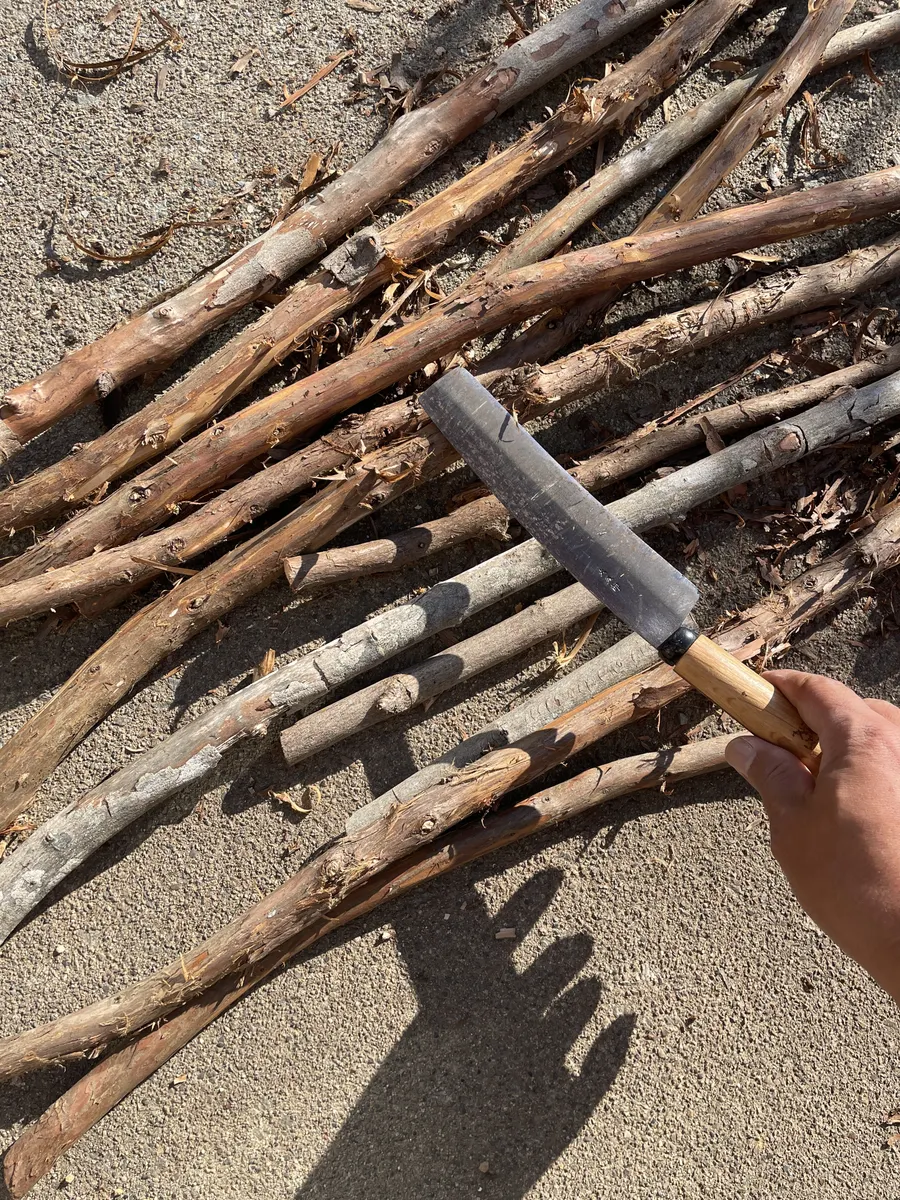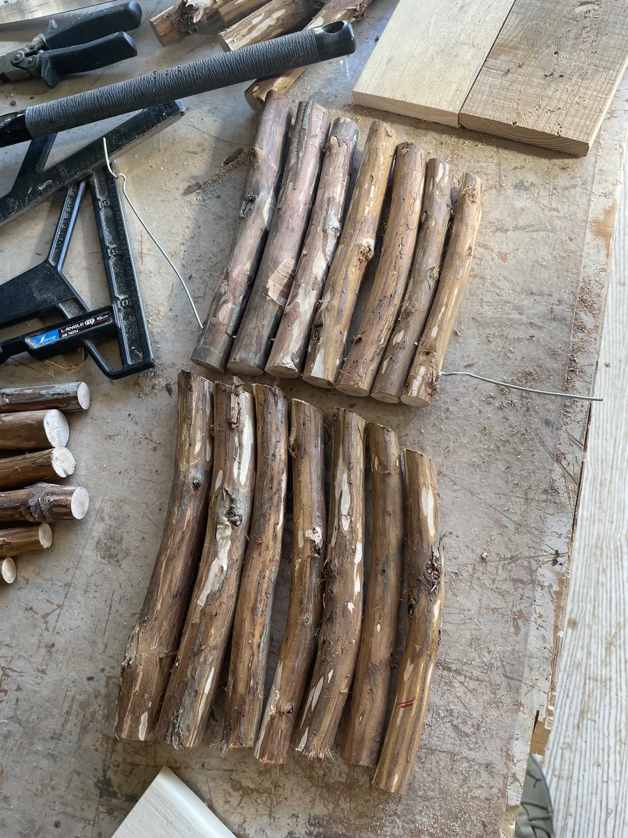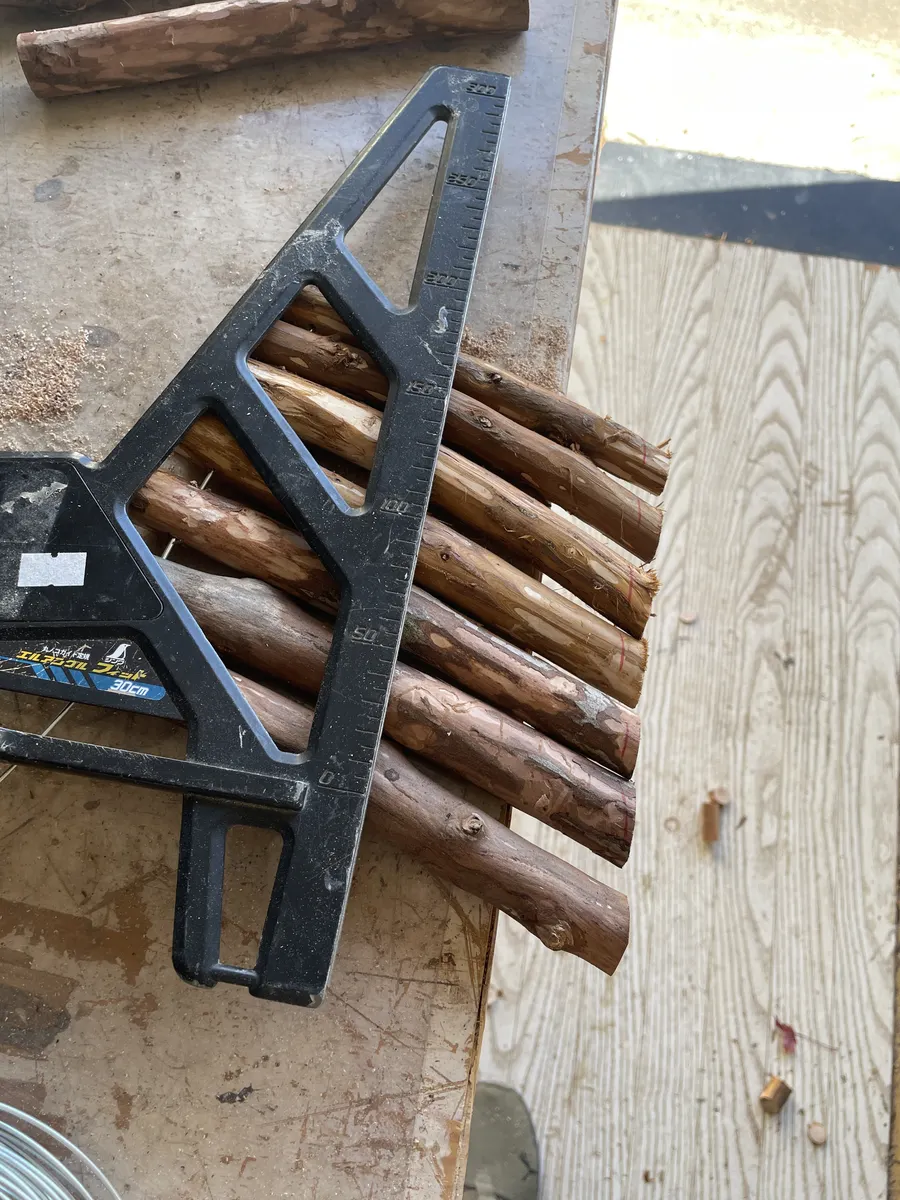 屋根になる部分は丸太?枝の材料が無くなってしまってカフェ板の端材を利用しちゃいましょー
