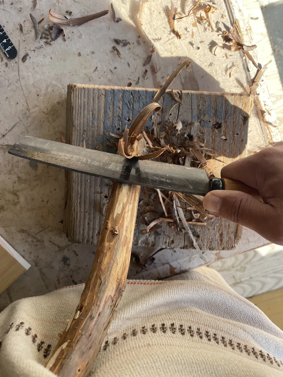 初めにこの木の周りの木肌をナタで綺麗にしていきましょー(^_^)v