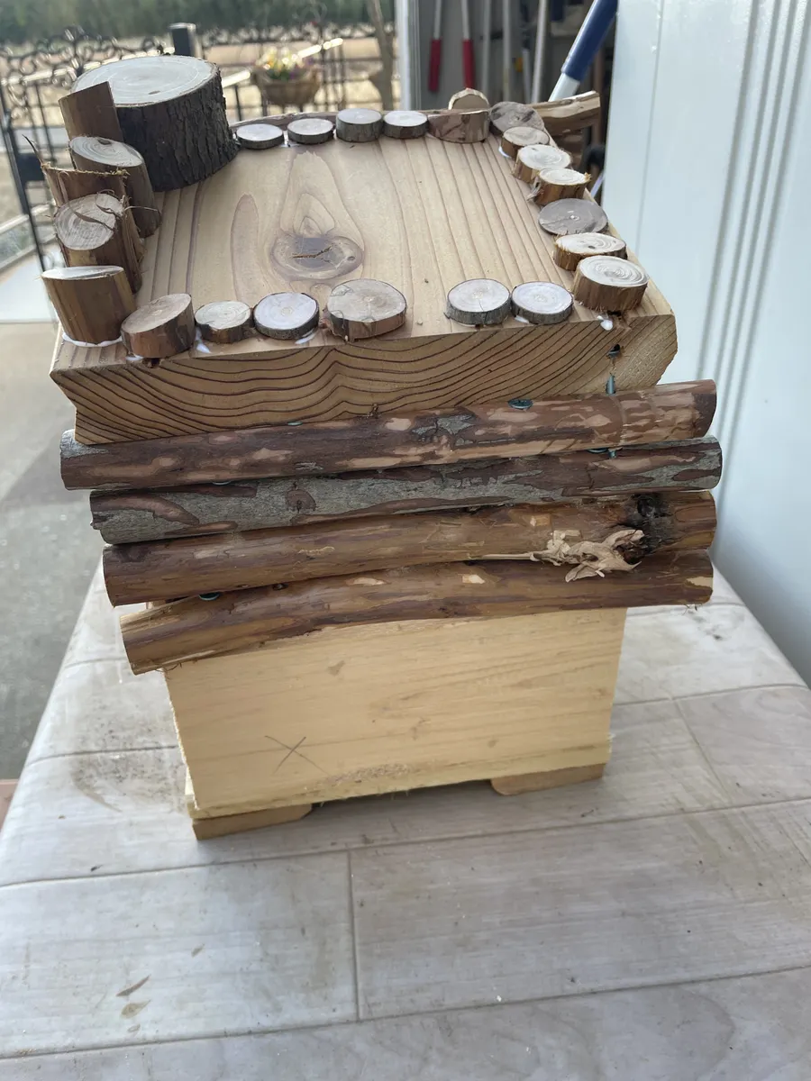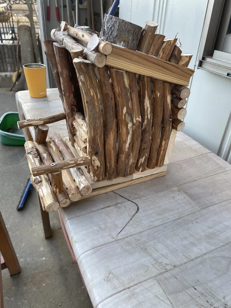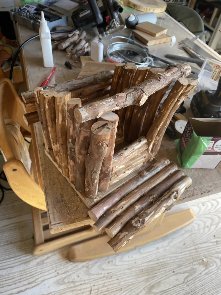 全面平たい板で作らず素材の特徴を活かしながらのバードハウスが出来ました!あ、間違い!丸太小屋が出来ました(^_^)v