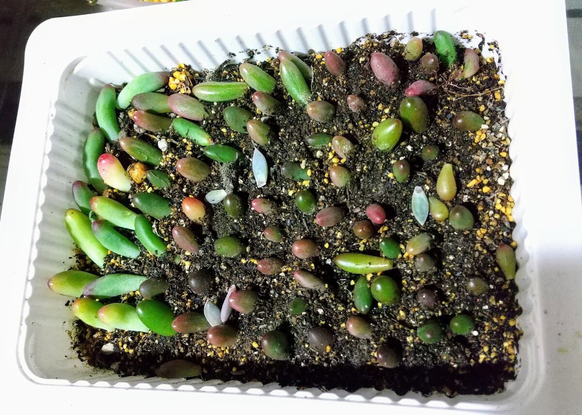 トップ > グリーン > つぶつぶMIX鉢✂️カット✨増やします🎵 みずたま☆ 2024/05/24 22:00 つぶつぶMIX鉢✂️カット✨増やします🎵 切る前の写真を撮り忘れました😩 去年の秋に虹の玉、オーロラ、レッドベリーを一緒にブリキ鉢へ植えていて😊 赤やピンクに紅葉して可愛い姿でしたが、春の成長スイッチが入りみんな緑へ🤣 狭くなって好き放題に伸びていたので蒸れ防止で切るしかない😆👍 去年の夏はうどん粉病と葉ダニにやられ全滅させたから😭 先端全部カット✂️増やします〰️😁切れば脇芽が出るので肥料追加😉👍 一応土へ差してますがぎゅうぎゅう🤣葉挿しはお豆腐パックへ 入りきらない分は株元へばら蒔きました〰️😆👌 いいね 共有する 共有する X LINE リンクをコピー コメントする 0 件の返信 (新着順)