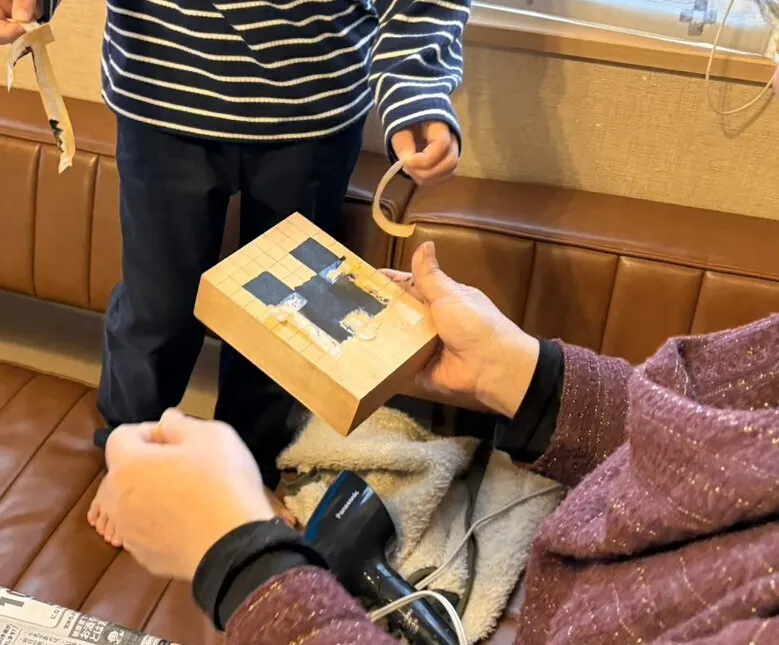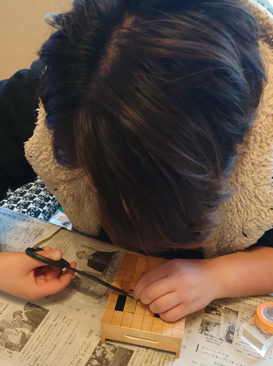 お正月に遊びに来ていた6歳の孫と一緒に作りました。