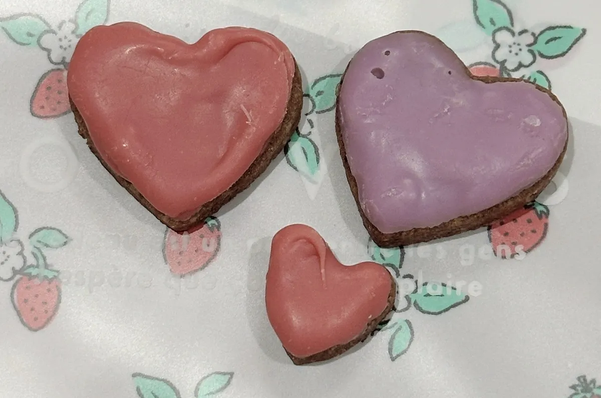 ハート型にくり抜いたクッキーにチョコペンでデコレートしたものを乗せてみました