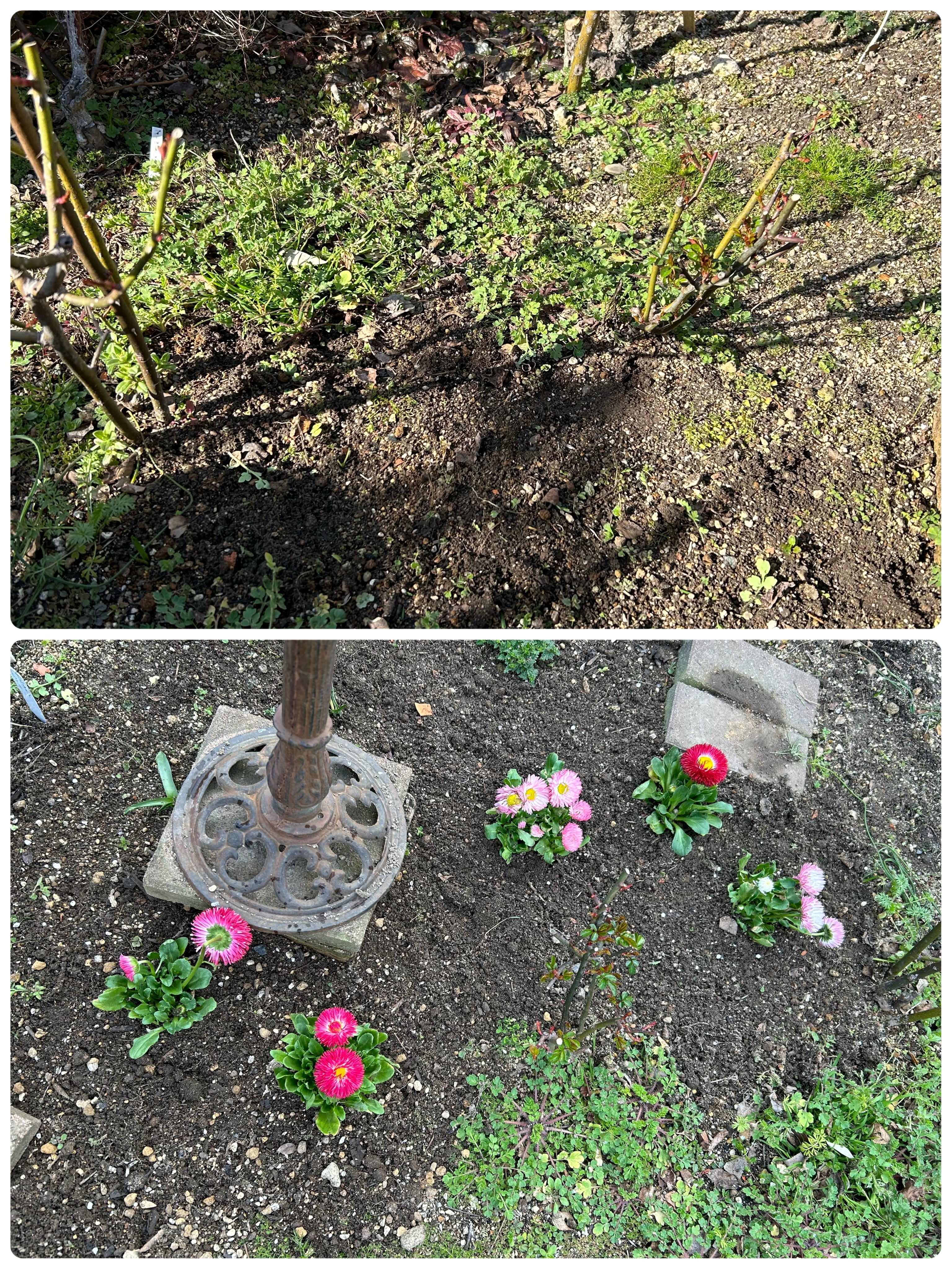 トップ > グリーン > がんばりました。 亜月 2024/02/27 17:53 がんばりました。 1:30〜5:30位まで、草引きとデージーの植え付けをしました。 薔薇の周りには、背の低いお花が似合います。 種が溢れて増えた背の高いおはなの幼苗を、今の間に引いておかねば、薔薇がやられてしまいますので。大変だぁ‼️ 背が低くても、びっしりと蔓延る、物も、要注意です。 まだ、ほんの一部をしたばかり。 大きくなるまでにしなくちゃ。 亜月のガーデン物語り🪴 いいね 共有する 共有する X LINE リンクをコピー コメントする 0 件の返信 (新着順)