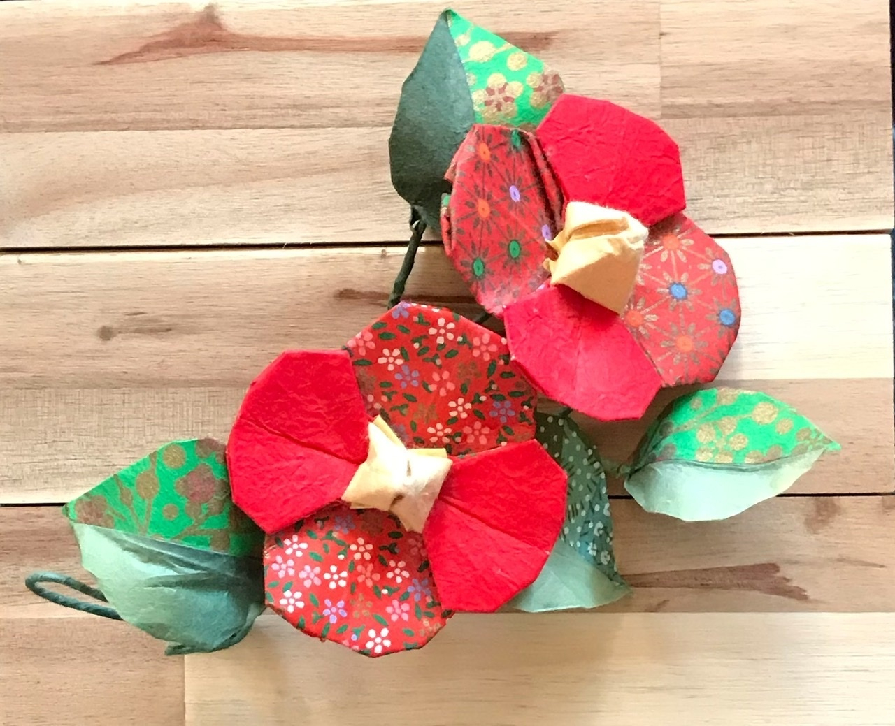 和紙で椿なんておしゃれで、カバンにつけたりして持ち歩きたいです✨