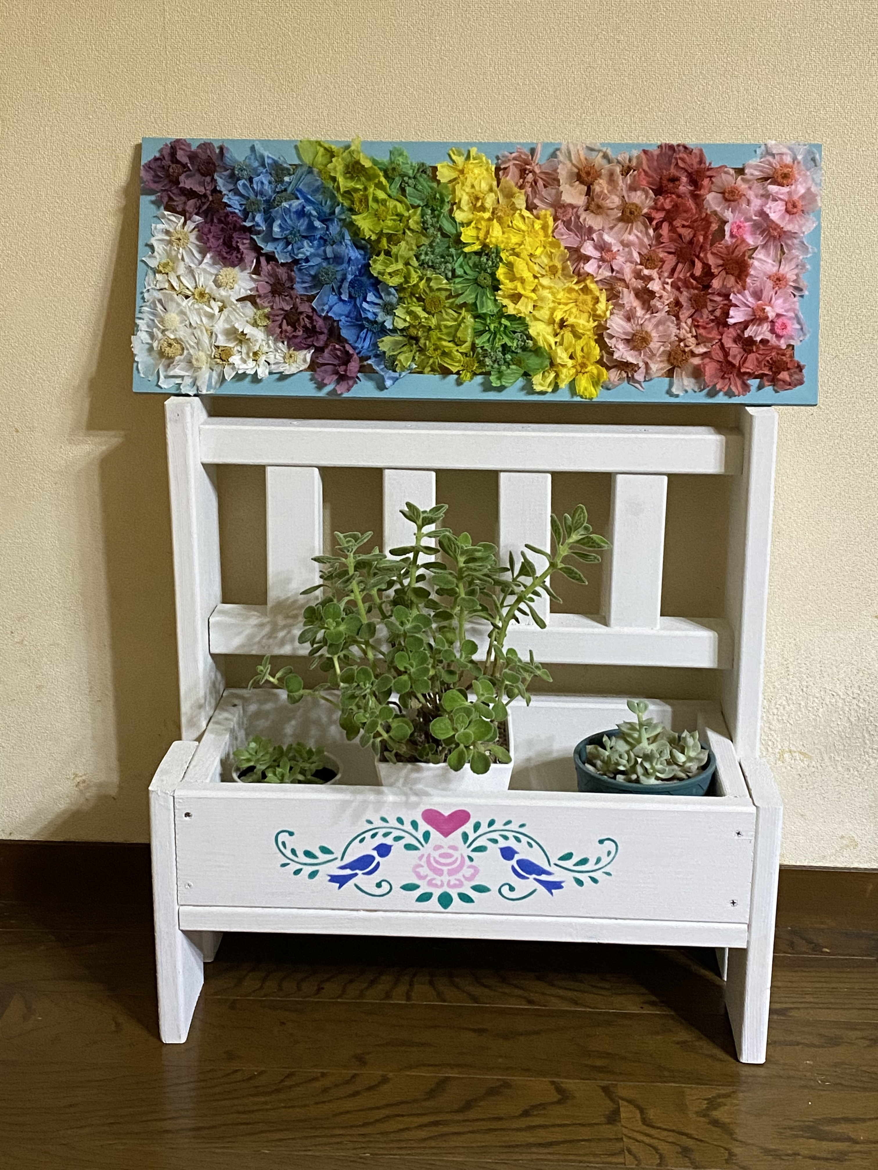トップ > その他 > 想いを込めて「誰かに贈るもの」 bell☆ 2022/02/14 21:42 想いを込めて「誰かに贈るもの」 お花好きな友人に贈ります。🤗 カインズのWSで作ったベンチ型プランターにステンシルをして可愛く仕上げました。 中にはいい香りのするアロマティカスを入れて。両サイドには、これから暖かくなると大きくなるであろう多肉ちゃんを。 おまけにプリザ加工した花を虹の🌈イメージで作った縦置きにも横置きにも出来るボードアレンジを添えてヾ(๑╹◡╹)ノ" いいね 共有する 共有する X LINE リンクをコピー コメントする 2 件の返信 (新着順) ミュートしたユーザーの投稿です。 投稿を表示 あにー 2022/02/17 21:39 ボードアレンジが、カラフルなコスモスに見えて、見とれてしまいました。 虹色、ステキなプレゼントですね いいね 返信する ミュートしたユーザーの投稿です。 投稿を表示 エンジェル くみ 2022/02/15 01:22 素敵な工夫が一杯💕 私もお友達に立候補🤗 いいね 返信する ミュートしたユーザーの投稿です。 投稿を表示 bell☆ 2022/02/15 14:55 エンジェル くみ様 有難うございます。🤗ついつい作った物をお友達が喜んでくれると、すぐまたプレゼントしたくなってしまう私です。😅 いいね 返信する
