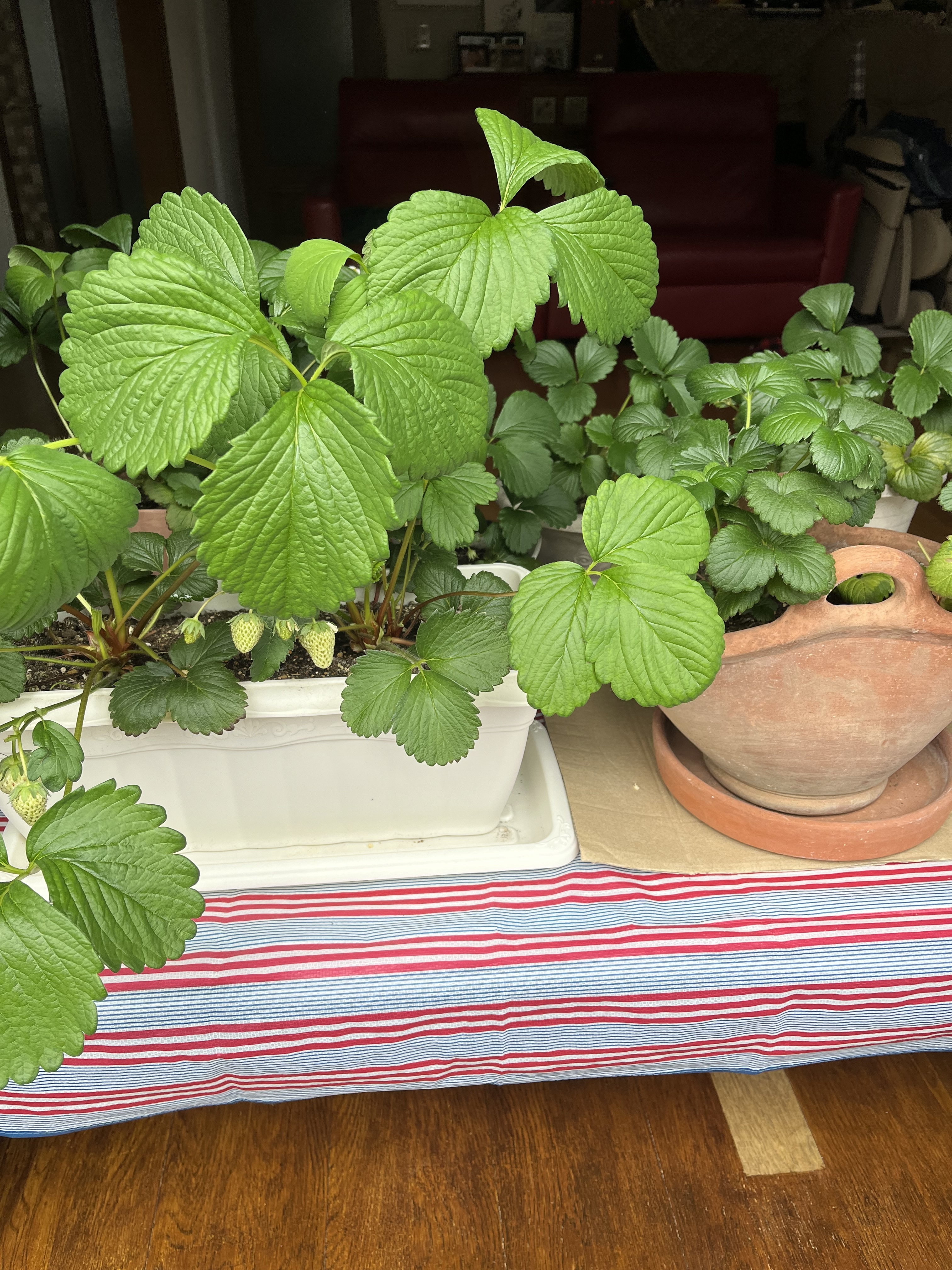 トップ > グリーン > リビングで育てているイチゴです toshi 2024/03/17 14:04 リビングで育てているイチゴです リビングで育てているイチゴです。11月から9株育てています。かれこれ40粒ほど収穫しました。実は2株は1月末まで外に置いておきました。冬の寒さに耐えた方が成長には良いということなので試しに置いてみました。しかし外では葉が土にへばりついていたのでかわいそうに思い2月から他の株と同じようにリビングで育てました。するとこのように大きな葉となりました。花も咲かせ、間も実も赤くなりそうです。やはり寒い風に当てるというのも必要なのかもしれません。自分も温室育ちなので。 いいね 共有する 共有する X LINE リンクをコピー コメントする 0 件の返信 (新着順)
