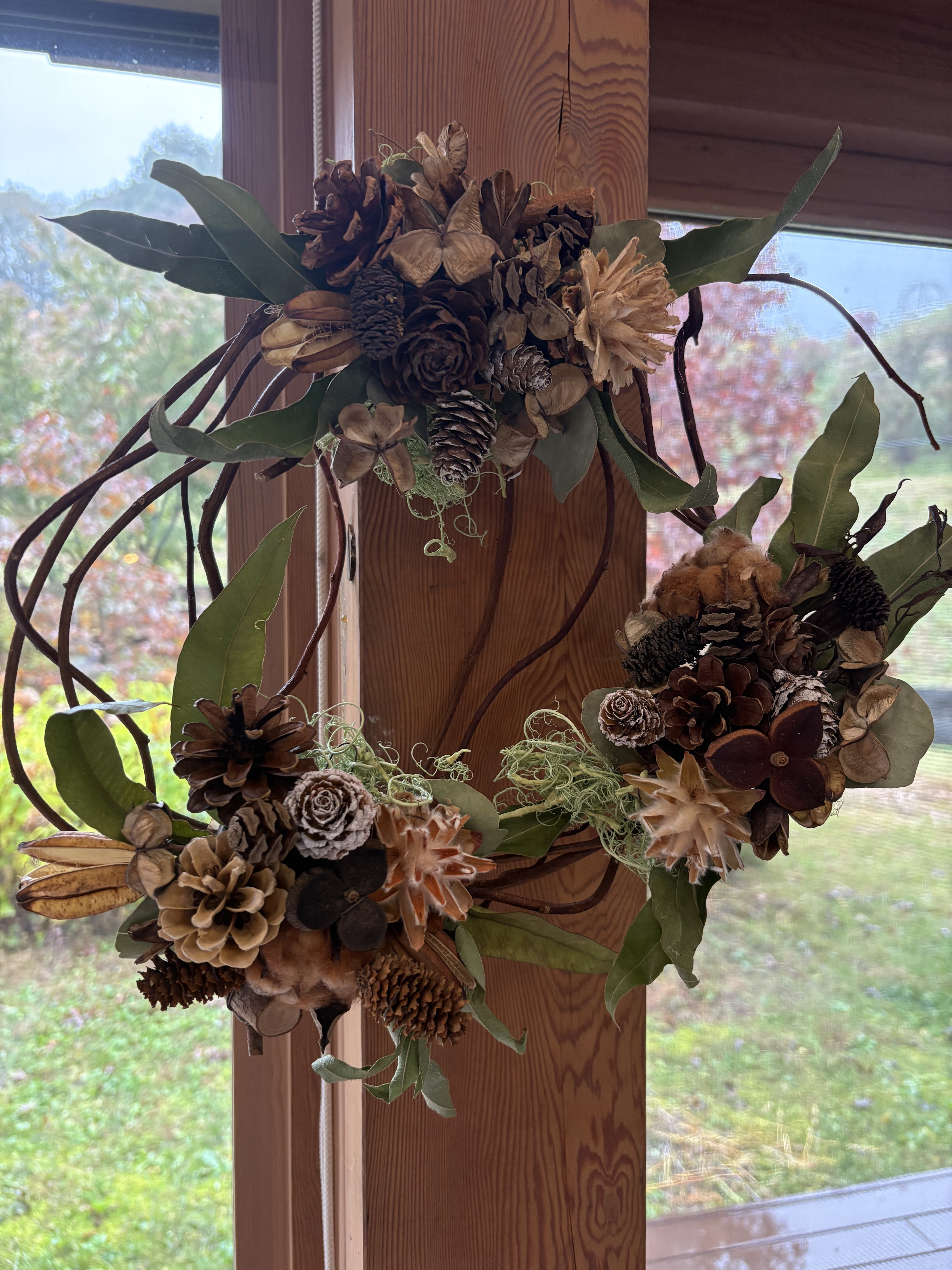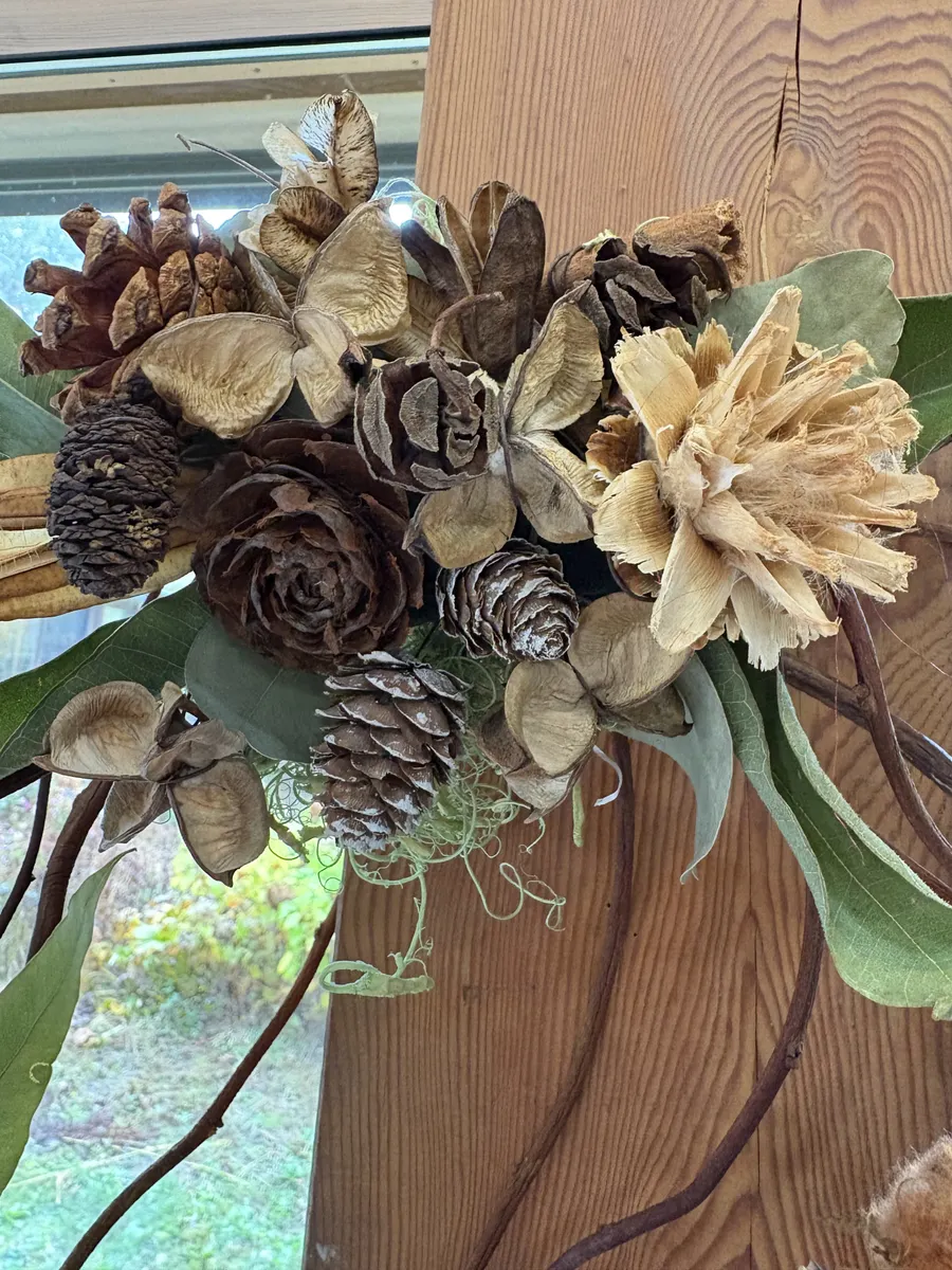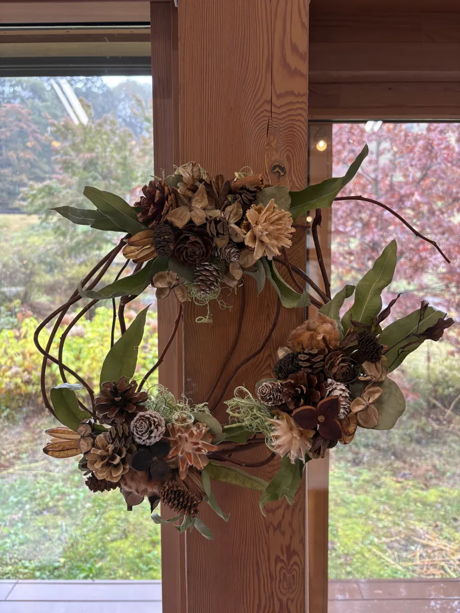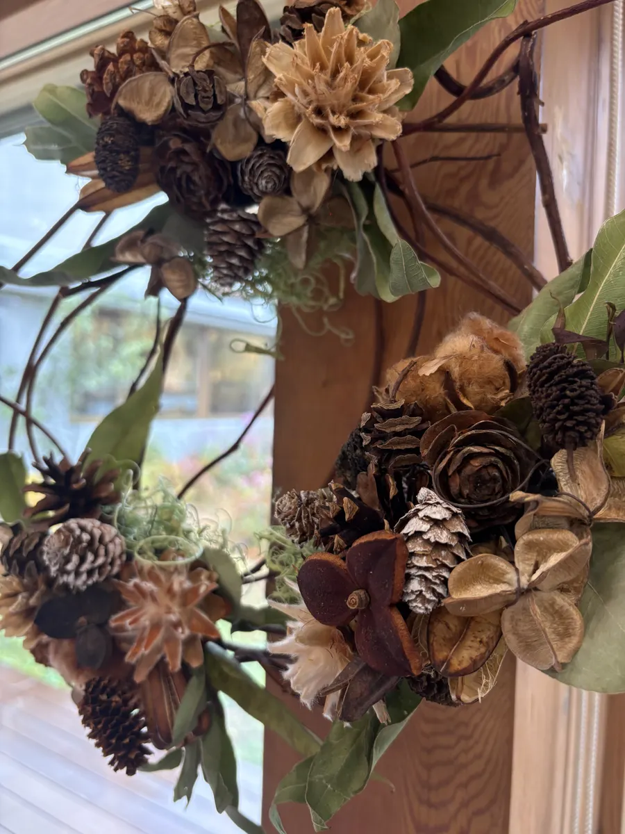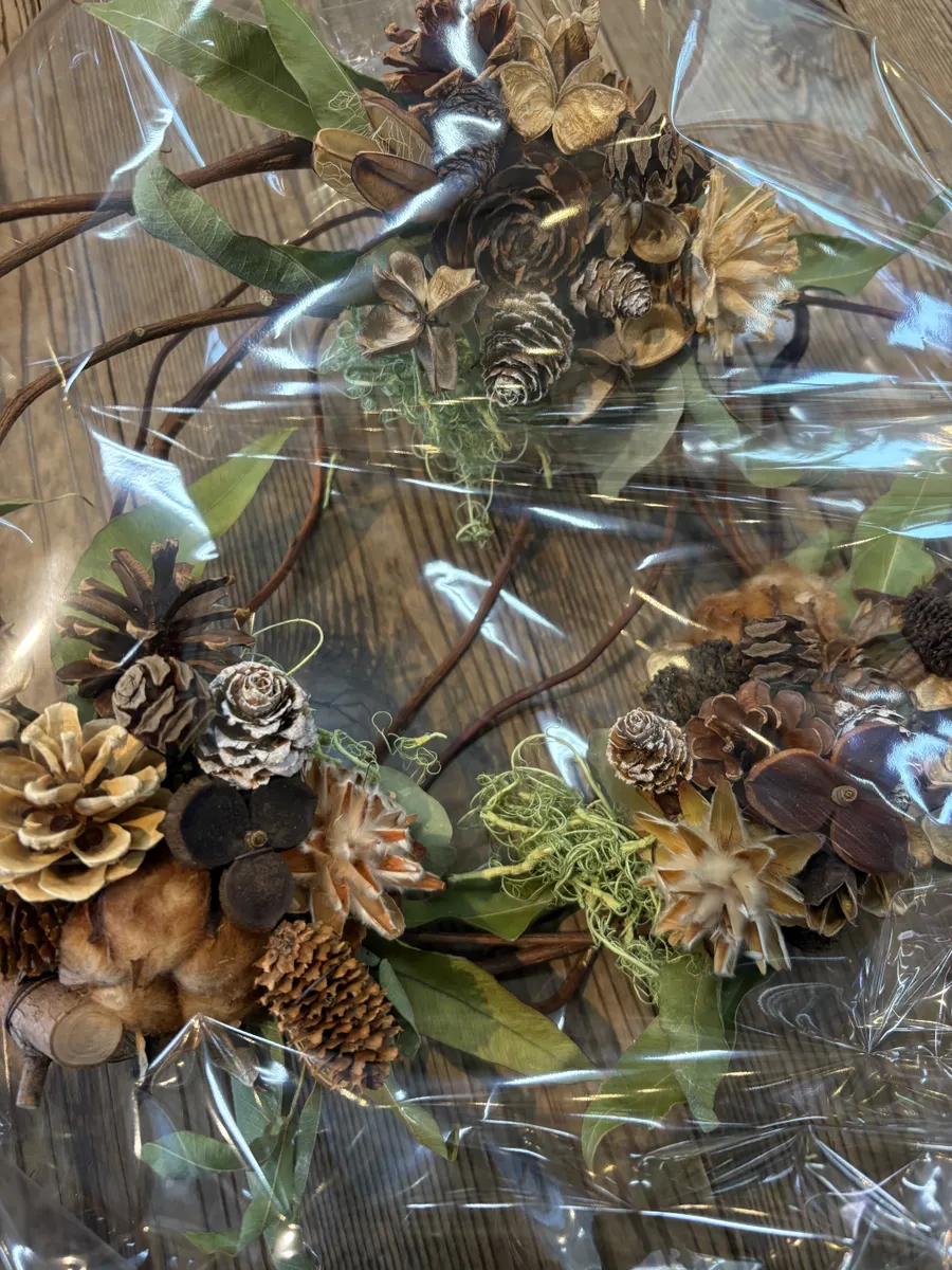 投稿を表示個性的な木の実と赤づるのフォルムで、唯一無二の素敵なリースが出来ましたね😍