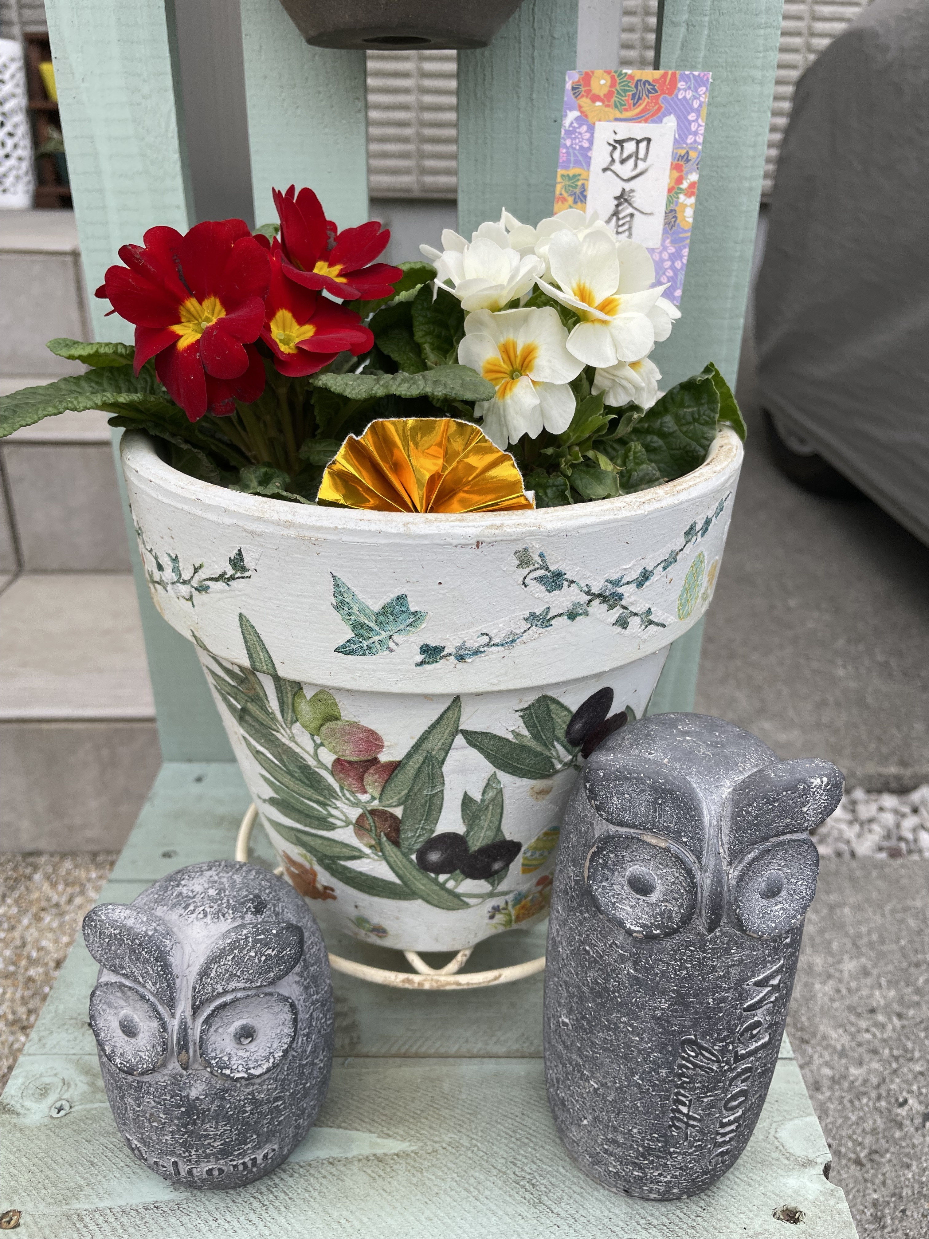 投稿を表示紅白のジュリアンも可愛いけれど、私はデコパージュの植木鉢に一目惚れしちゃいましたぁ~💕。