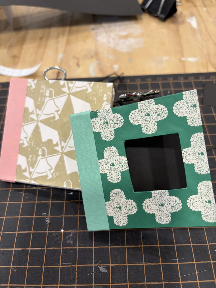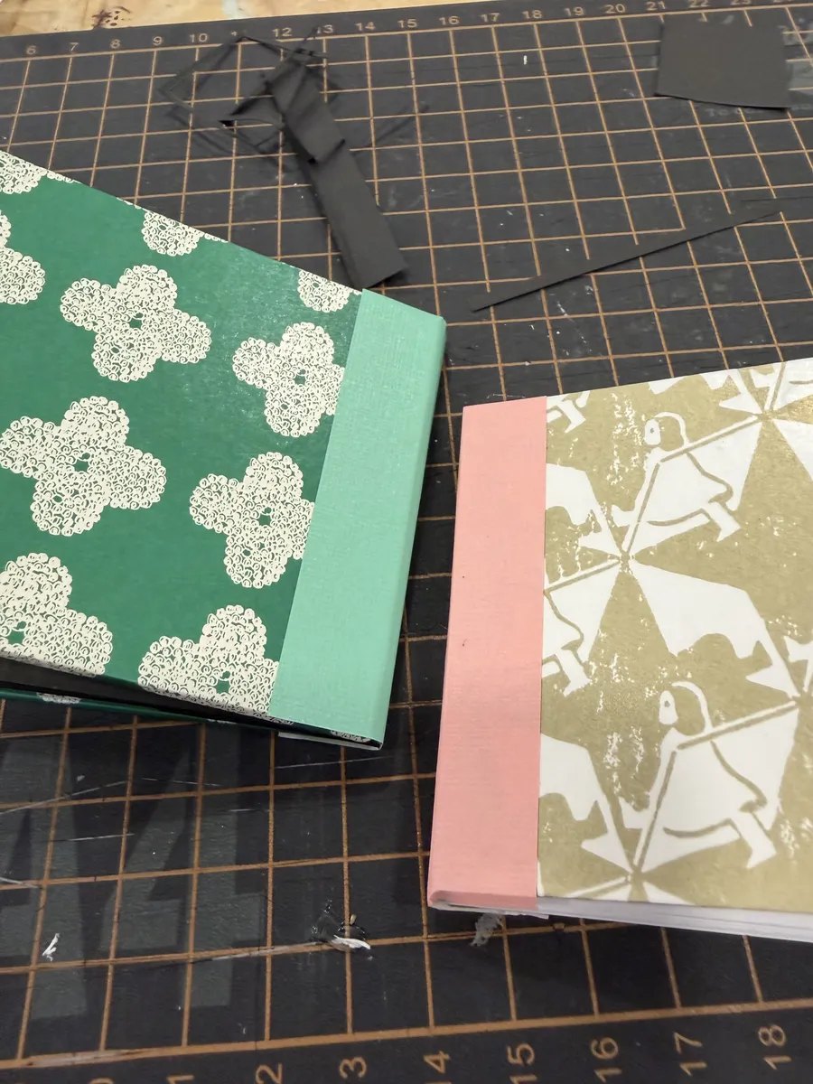 ボンドを乾かす間に表紙、背表紙にペーパーを貼ります。