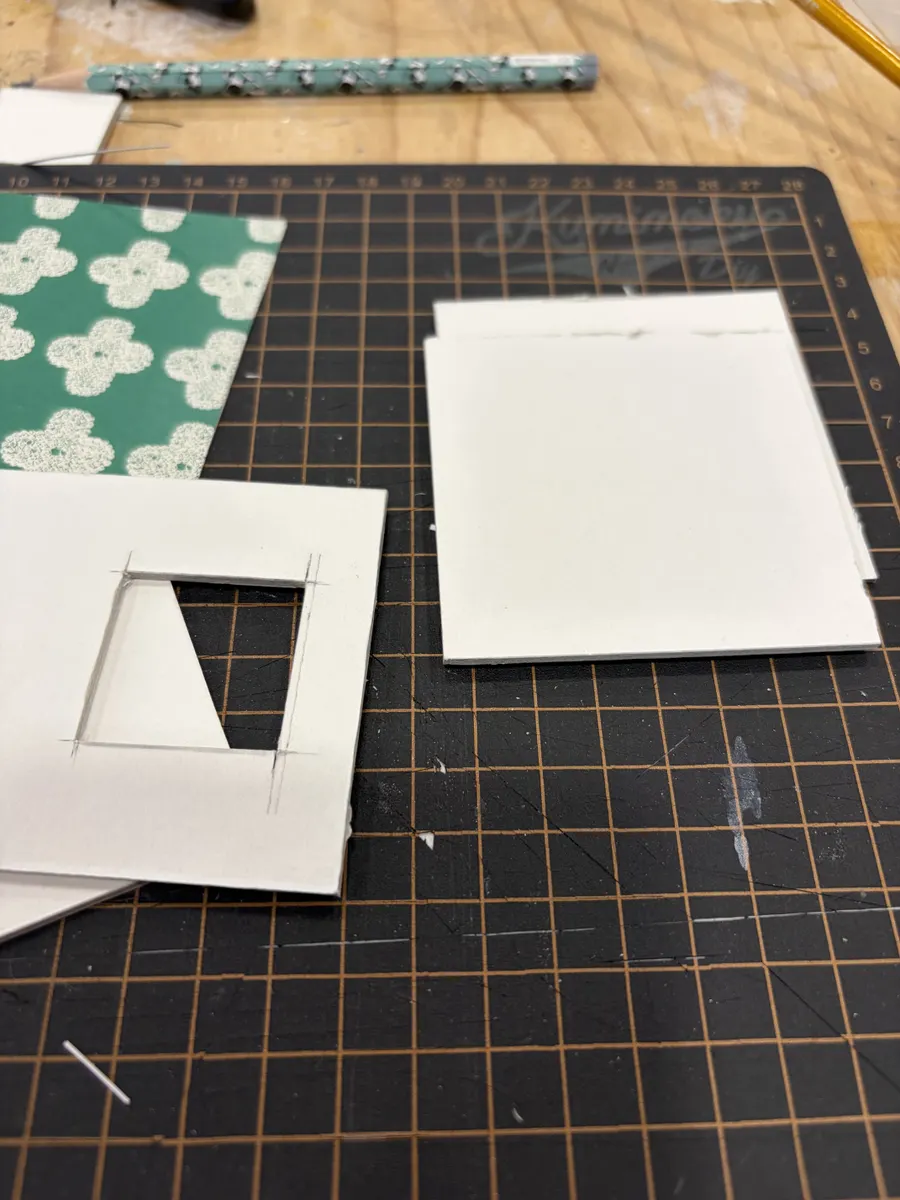 表紙に窓を作る時はペーパーを貼る前にカットします。
