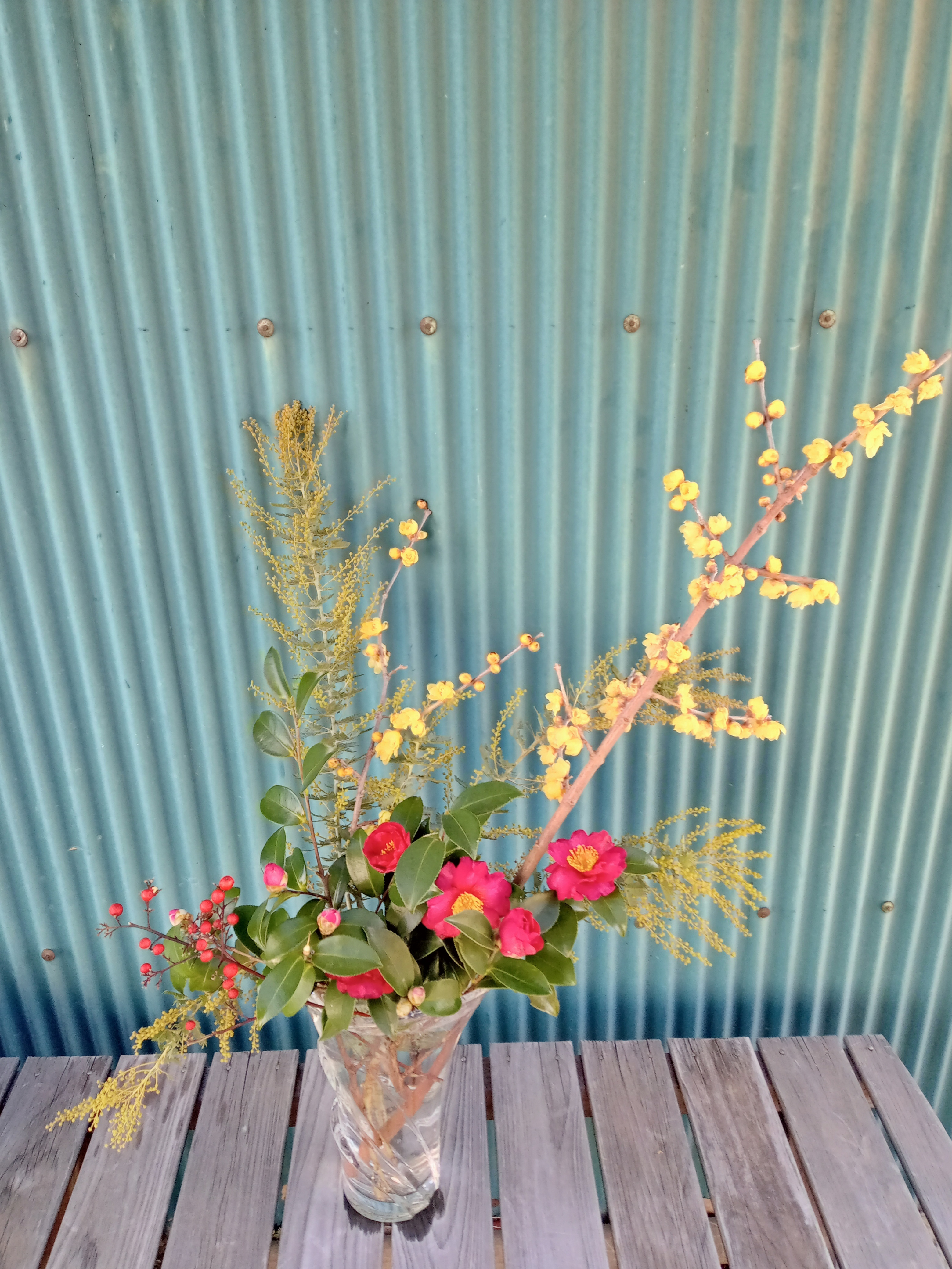 投稿を表示蝋梅の優しい黄色と椿の赤、良いですね、こちらのミモザですね💗