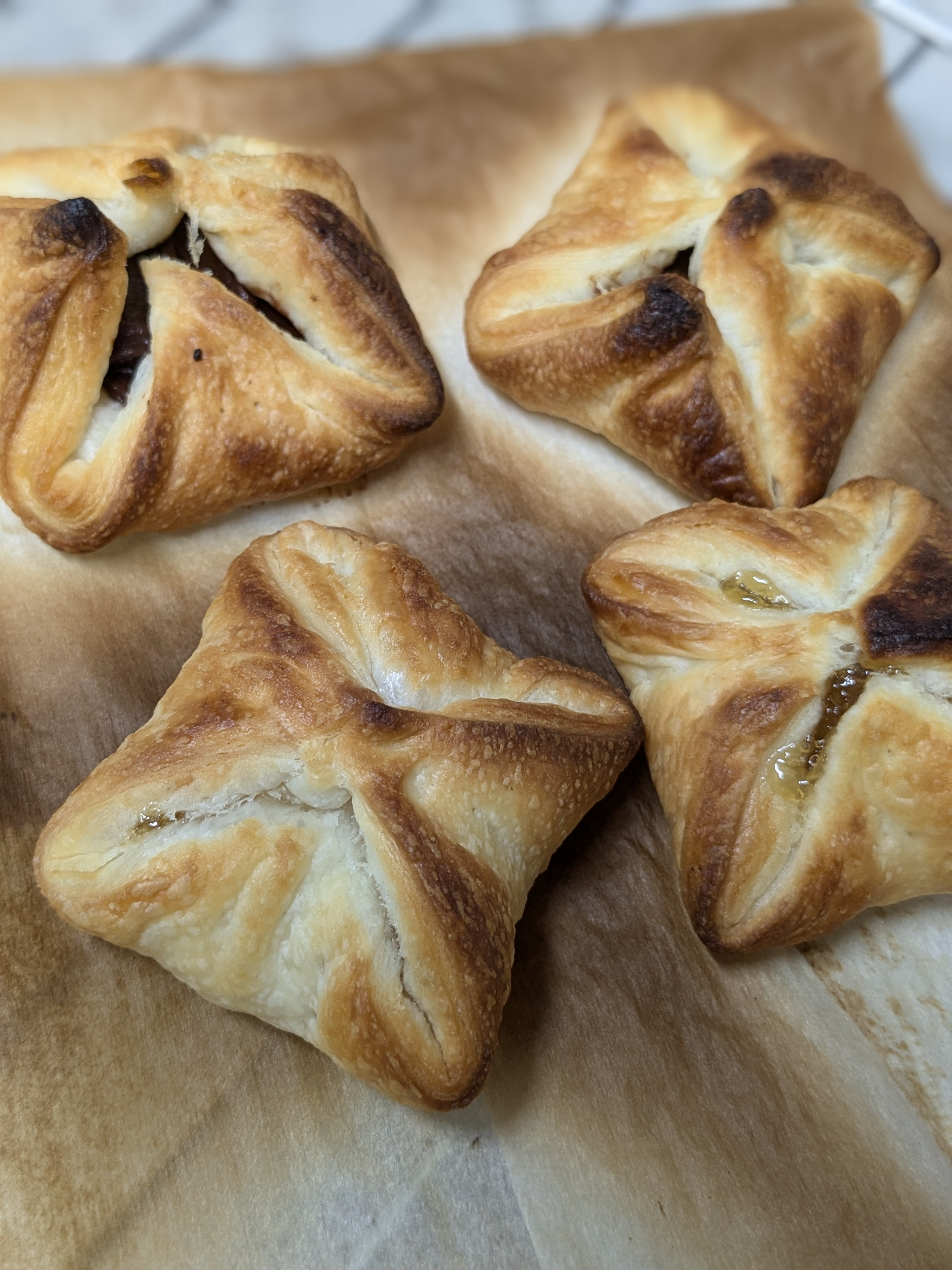 トップ > クッキング > パイシートでデザートパイ🥧 みんと 2024/08/23 10:27 パイシートでデザートパイ🥧 昨日のキッシュづくりでパイシートが余ったので、デザートパイを作りました🎵 板チョコを砕いたものとサンダルフォーのオレンジジャムを入れたものの2種類。 卵を塗らなかったのでツヤはないですが、お味はバッチリです✨ いいね 共有する 共有する X LINE リンクをコピー コメントする 1 件の返信 (新着順) ミュートしたユーザーの投稿です。 投稿を表示 CHIE☆ 2024/08/23 21:34 パイシートで包むだけでオシャレなデザートが出来ちゃうんですね🤩 美味しそう✨✨✨ いいね 返信する ミュートしたユーザーの投稿です。 投稿を表示 みんと 2024/08/23 21:38 CHIE☆ パイシート、ほんとありがたい✨ 焼く時間も短くてすむので、食べたいときにすぐに作ることができて便利です🎵 いいね 返信する