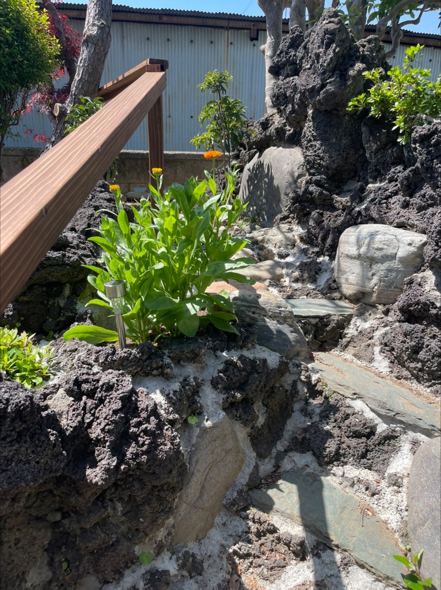 昨年5月に再構築した石段途中のミニ花壇(リンク→ https://diy-square.cainz.com/announcements/yhskebjxdlh4wjzm )にやっと花が咲きました。