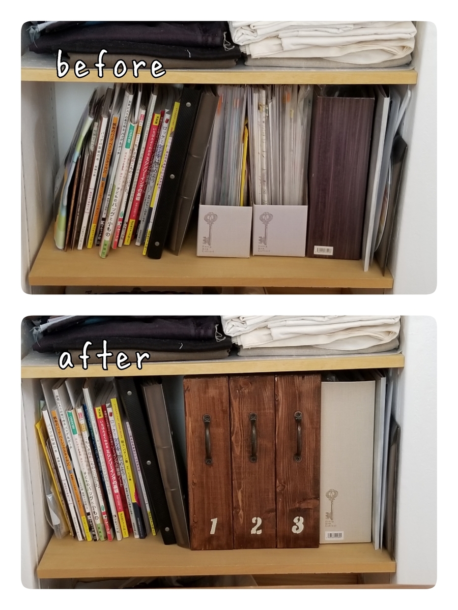トップ > その他 > ファイルケースの収納ラック エル 2022/02/17 12:16 ファイルケースの収納ラック 先日ワークショップに参加したときに見つけたレシピ! これ、作ってみました✨ カインズさんのファイルケース、板を付ける必要はないくらいしっかりしてたしシンプルで良かったんですけど…私的にはこっちの方が断然可愛い🎵 100均の厚紙のファイルケースと交換!ナチュラル感倍増です。ケースの巾が狭かったので入りきらず💦 あと2つくらいは欲しいかも! いいね 共有する 共有する X LINE リンクをコピー コメントする 9 件の返信 (新着順) ミュートしたユーザーの投稿です。 投稿を表示 Beni 2022/02/18 11:31 コレはいい!整理整頓したくなっちゃいますね! 壁一面、いっぱいになるようにするのもありかも!(笑)見映えがいい! いいね 返信する ミュートしたユーザーの投稿です。 投稿を表示 エル 2022/02/19 14:42 そうなんです(笑)他の部屋の棚には100均のプラスチックかごがたくさんあるので、あれにも付けようかと…😁 その前に、この棚ですね! いいね 返信する ミュートしたユーザーの投稿です。 投稿を表示 檸檬 2022/02/18 10:15 おしゃれだし、使いやすいし素敵ですね💕 棚、全部やりたくなるの分かります😊 数字はいくつまで、いくのかな😄❓️ いいね 返信する ミュートしたユーザーの投稿です。 投稿を表示 エル 2022/02/19 14:39 ありがとうございます! 『5』までは欲しいんですが、埋め尽くすと『8』くらいまではいけそうですね! いいね 返信する ミュートしたユーザーの投稿です。 投稿を表示 CHIE☆ 2022/02/17 22:21 オシャレ〜😍 たくさん並べたくなっちゃいますね✨ いいね 返信する ミュートしたユーザーの投稿です。 投稿を表示 エル 2022/02/18 08:09 そうなんです。この棚全文埋め尽くしたいです! いいね 返信する ミュートしたユーザーの投稿です。 投稿を表示 モモかん 2022/02/17 21:54 良いですね〜✨ 私も沢山ファイル整理しなきゃいけないから… チャレンジしてみますっ👍 いいね 返信する ミュートしたユーザーの投稿です。 投稿を表示 エル 2022/02/18 08:08 ちょっとしたことですが、テンション上がります!無駄に出したり入れたりしてます(笑) いいね 返信する ミュートしたユーザーの投稿です。 投稿を表示 ちるちるみちる 2022/02/17 14:35 私も作りたくなっちゃったな😃 いいね 返信する ミュートしたユーザーの投稿です。 投稿を表示 エル 2022/02/18 08:06 ぜひぜひ✨短時間でたくさん作れちゃいますよ🎵 いいね 返信する ミュートしたユーザーの投稿です。 投稿を表示 がーぁ 2022/02/17 13:48 か、可愛い❤️ 作ってみたい。いや、作ってみる❗ いいね 返信する ミュートしたユーザーの投稿です。 投稿を表示 エル 2022/02/18 08:05 ぜひ作ってください!使いやすいし良いですよ😉👍✨ いいね 返信する ミュートしたユーザーの投稿です。 投稿を表示 Smile 2022/02/17 12:45 とっても素敵ですね✨💕 簡単に出来ますし私もやってみようかな。 参考にさせて下さいね、 いいね 返信する ミュートしたユーザーの投稿です。 投稿を表示 エル 2022/02/17 13:06 ほんとに、あっという間に出来上がりました!可愛いし、もっと増産したいくらいです。ぜひ作ってください🎵 いいね 返信する ミュートしたユーザーの投稿です。 投稿を表示 ちぇりすけ 2022/02/17 12:42 一手間加えるだけで、倍以上の満足感を得られる作品ですね❣️ちなみに、ファイルと板は、何でくっ付いているのですか❓強力ボンド❓ いいね 返信する ミュートしたユーザーの投稿です。 投稿を表示 エル 2022/02/17 13:04 ほんとに一手間なので、オススメです!ファイルと板はファイル側からビスでとめています。 いいね 返信する ミュートしたユーザーの投稿です。 投稿を表示 べるん 2022/02/17 12:39 とてもお洒落ですね✨ 私もレシピは見ましたが、きちんと製作されるのは、やはり流石です🛠️ いいね 返信する ミュートしたユーザーの投稿です。 投稿を表示 エル 2022/02/17 13:03 ありがとうございます!背面に取っ手があるので、とっても使いやすくなりました いいね 返信する