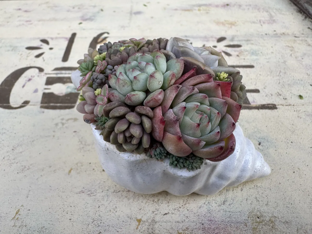投稿を表示白い貝殻の鉢に映えて、素敵ですね✨