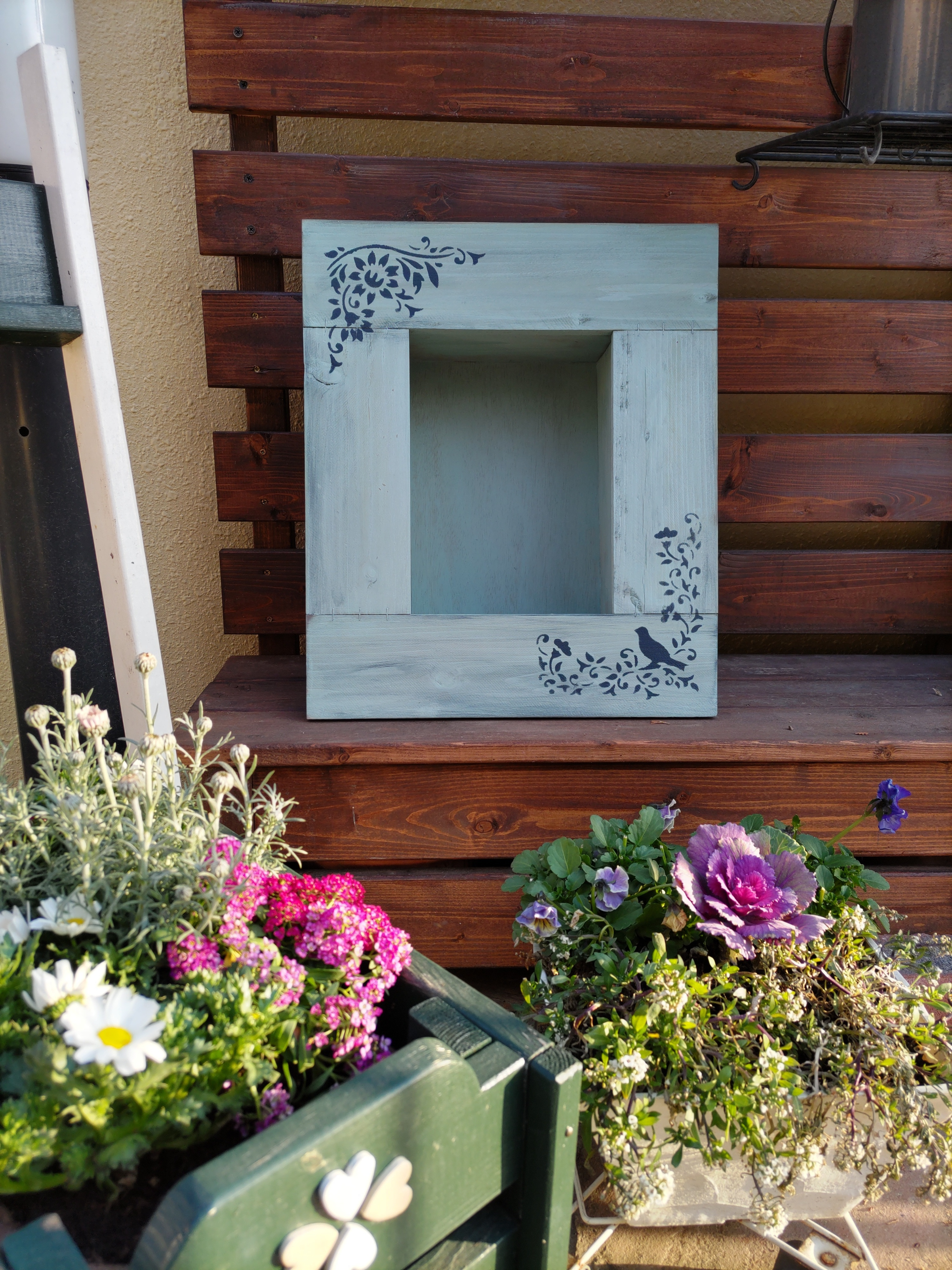 投稿を表示ダスティグリーンにアイアンブルーのステンシルが映えて素敵ですね✨