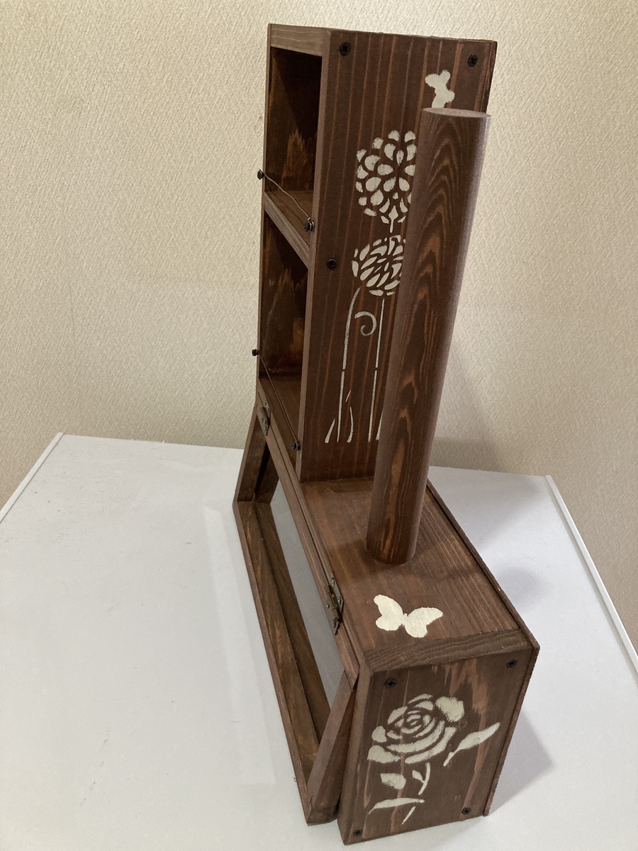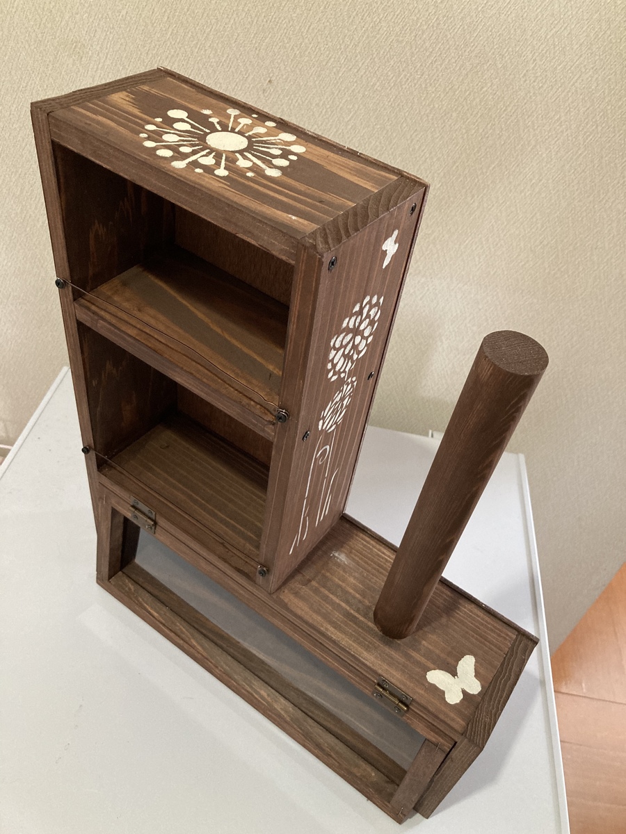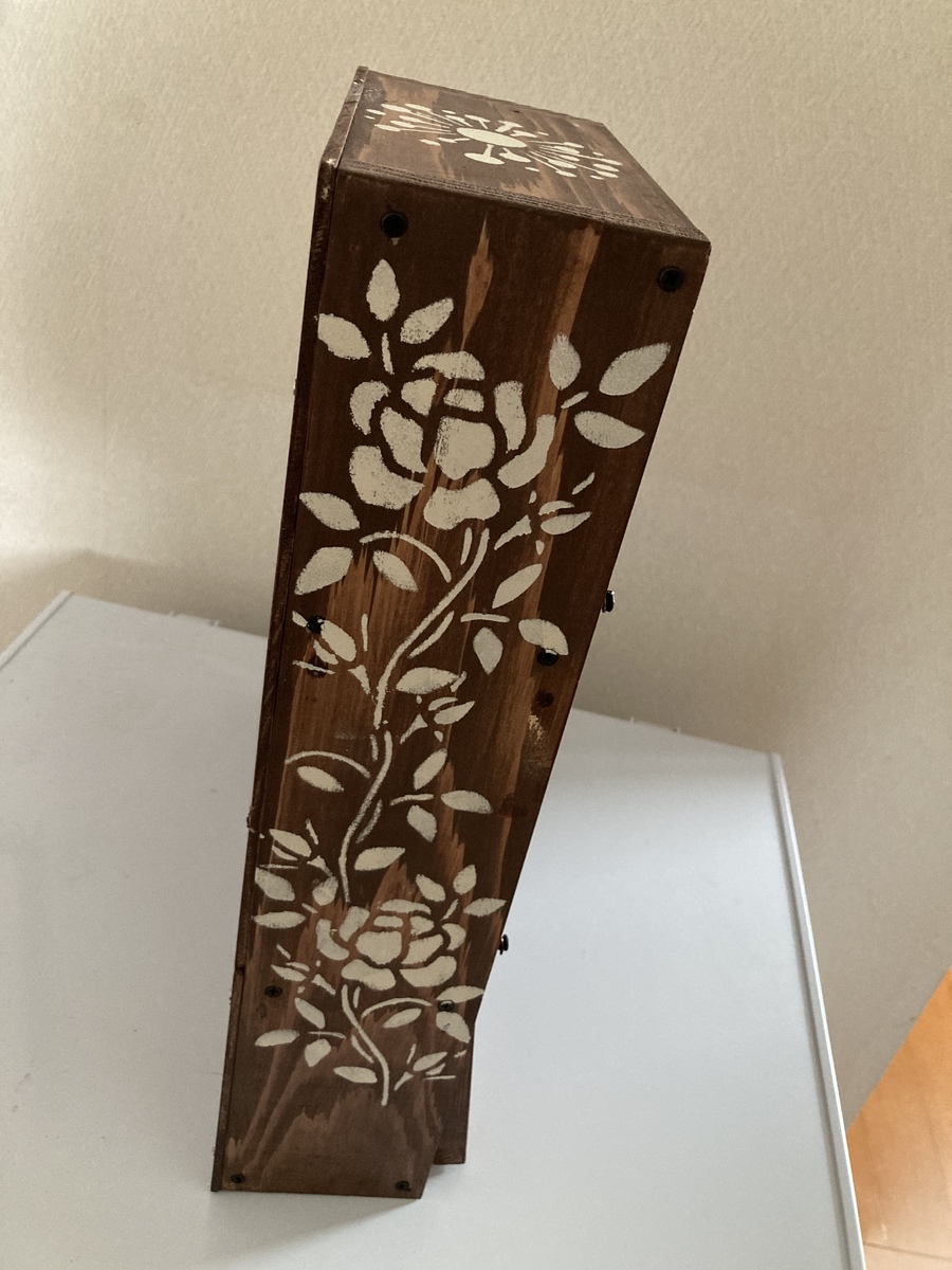 このデザイン素敵ですね❣️ウォルナットにステンシルが映えて華やか☺️上手く出来るとリメイクしたくなりますね💕