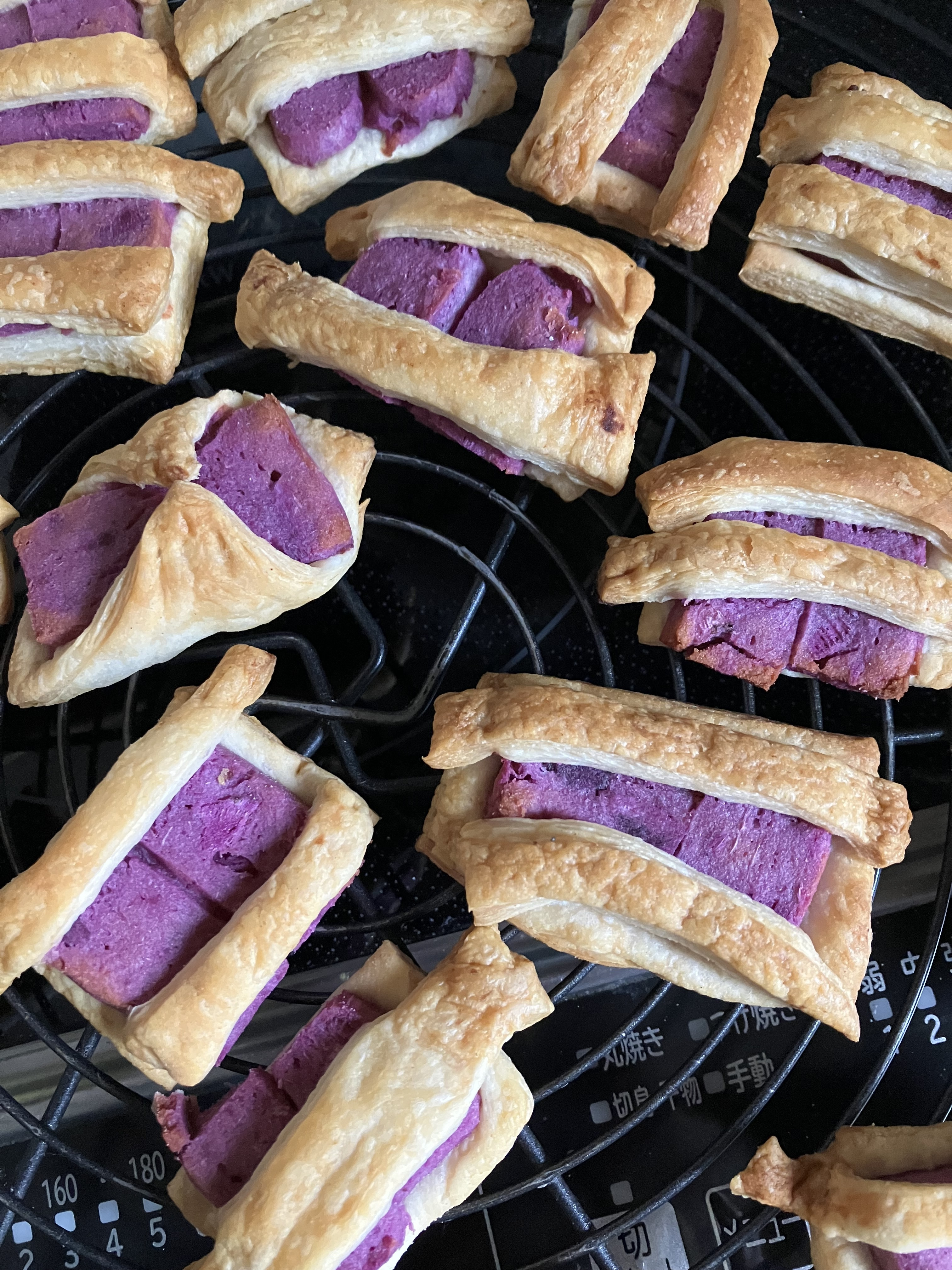 パイがサクサクで、紫芋はしっとりしてそうです☺️