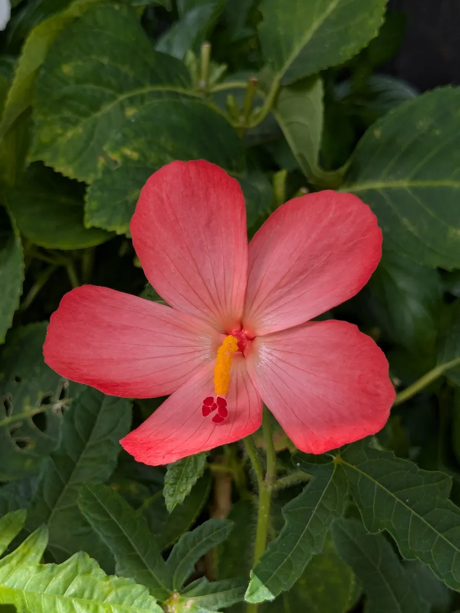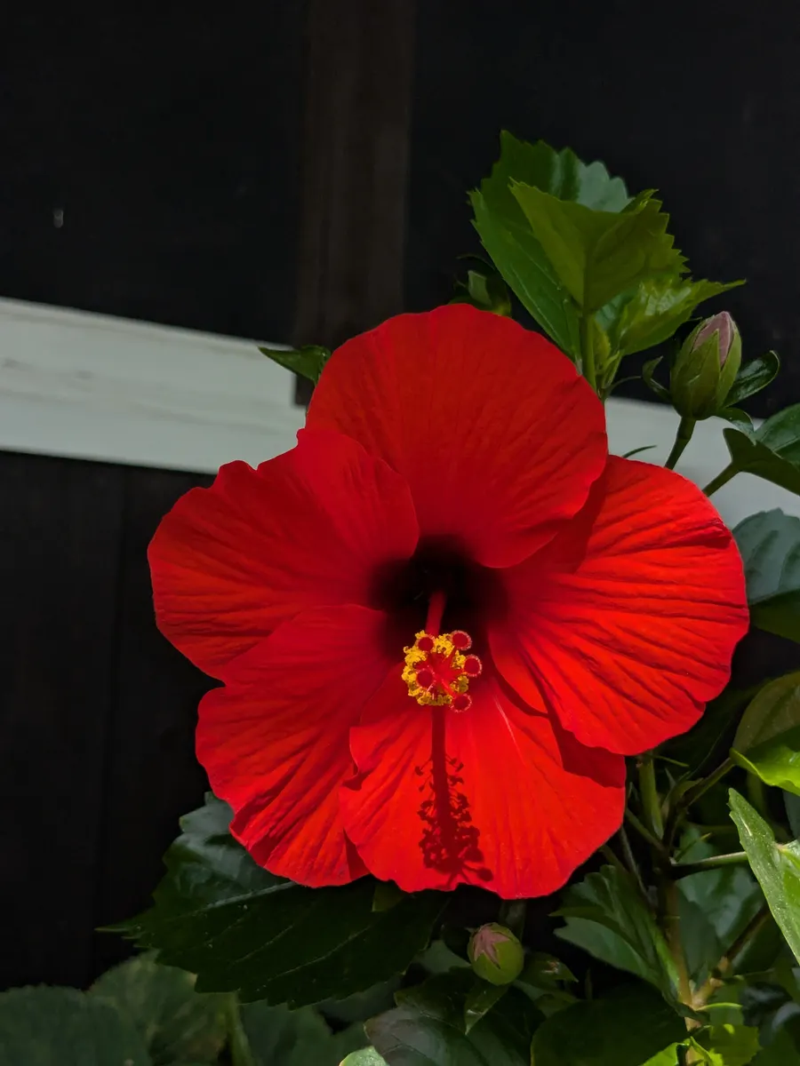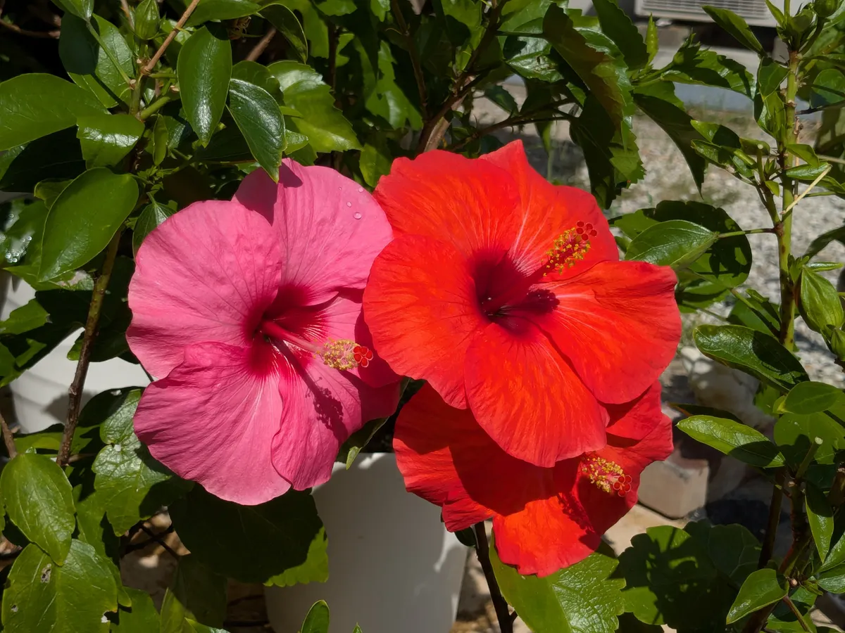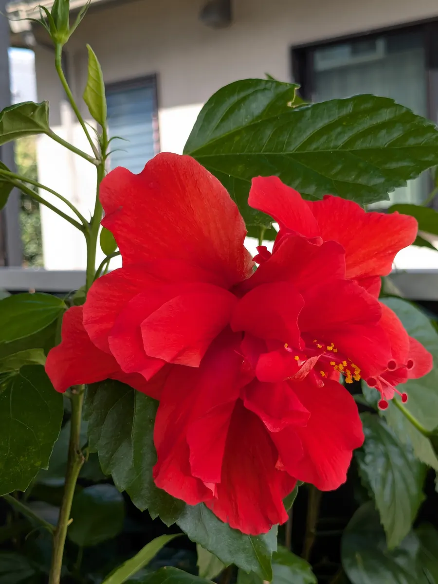 栽培のお手本みたいなハイビスカス🌺、🏡のオレンジも元気取り戻して咲いて欲しい🙏🙏🙏葉っぱ増えたのが嬉しいです。