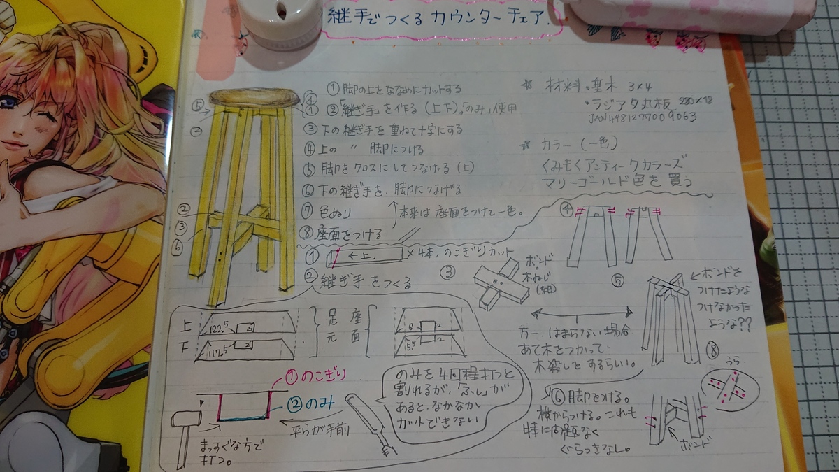 座面はのちに ステインの黒系でぬろうかなと思います。