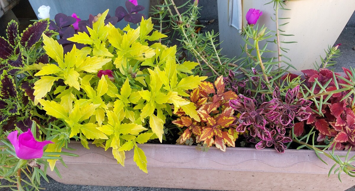 トップ > グリーン > 秋先取り(コリウスで紅葉風) あにー 2023/10/02 12:37 秋先取り(コリウスで紅葉風) 65㎝のプランターに5株でちょっとキツいかな?と思ったけれど、予想通りの紅葉バージョンに育ちました! 挿し木して、寄せ植えに使ったりして、カラフルな庭になっています。 ペチュニアと寄せ植え、ペチュニアは枯れてしまったけれど、コリウスは元気マツバボタンと寄せ植え小型種で揃えたけれど、成長にはやはり差が出ますね、 いいね 共有する 共有する X LINE リンクをコピー コメントする 0 件の返信 (新着順)