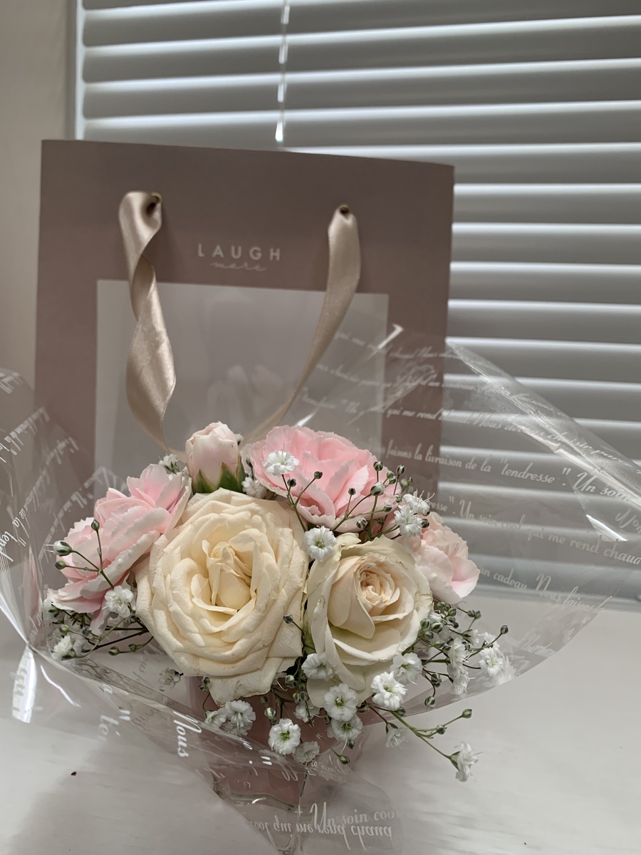 投稿を表示ご自分でこんなステキにアレンジされるなんて‼️優しい組み合わせが、お人柄を表しているように思います❣️
