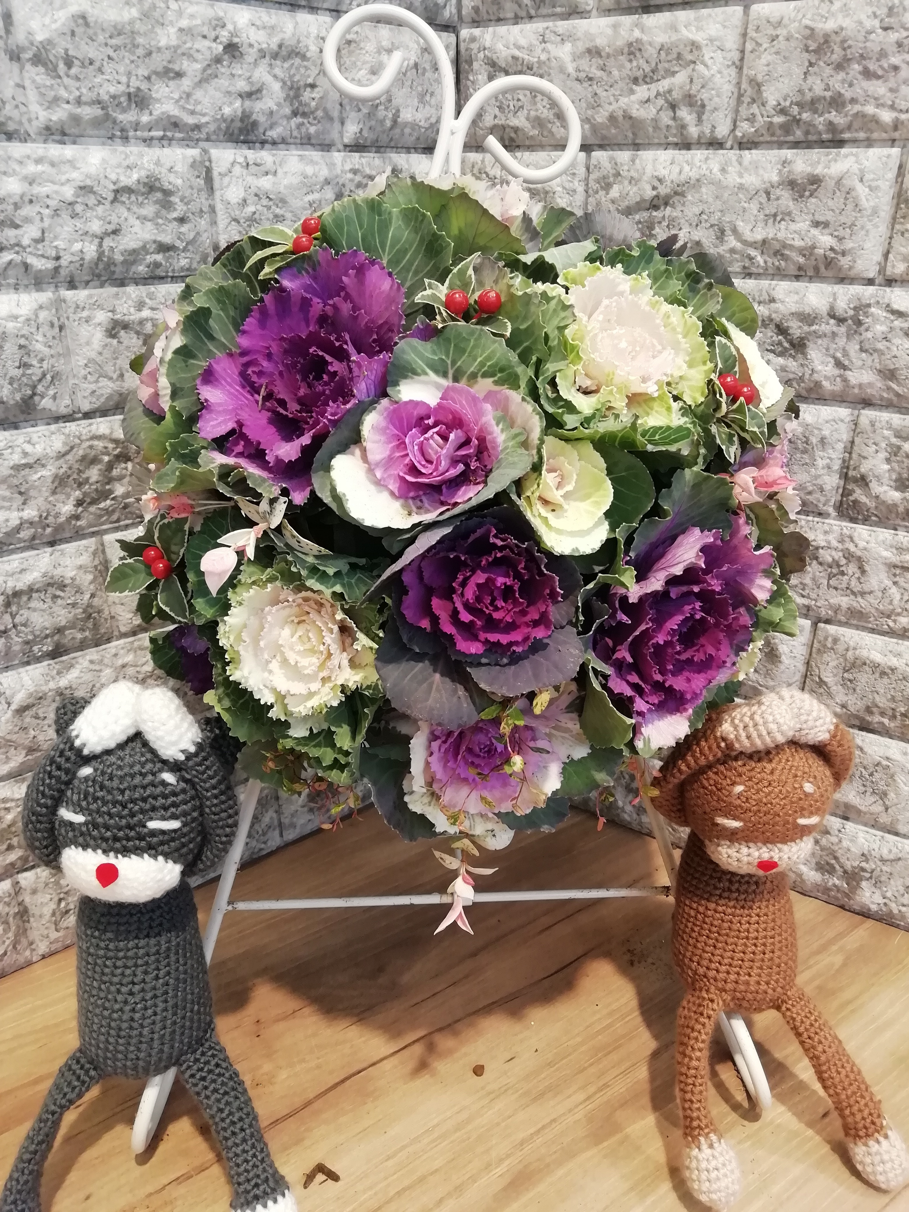 色鮮やかな葉牡丹のハンギング、とっても華やかで素敵です✨✨