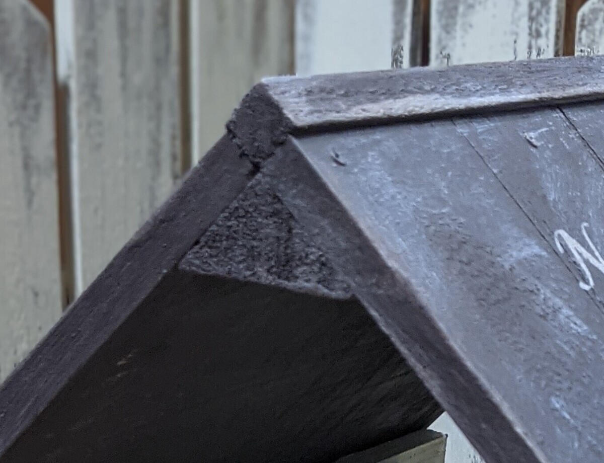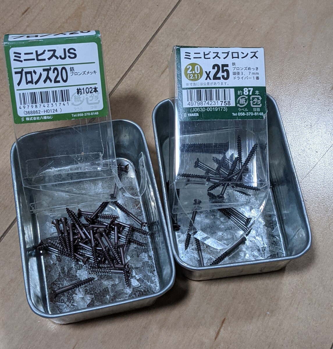 屋根の合わさる部分は、下側と上側を木工用ボンドで貼り付けて、ビス打ちして補強する😊
