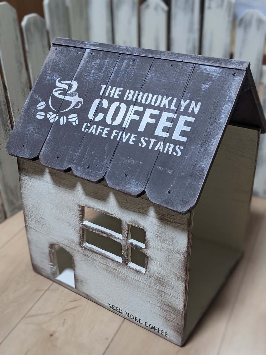 屋根は両側1枚だけ寸が足りなくて適当な大きさに切って屋根に貼り付け😄