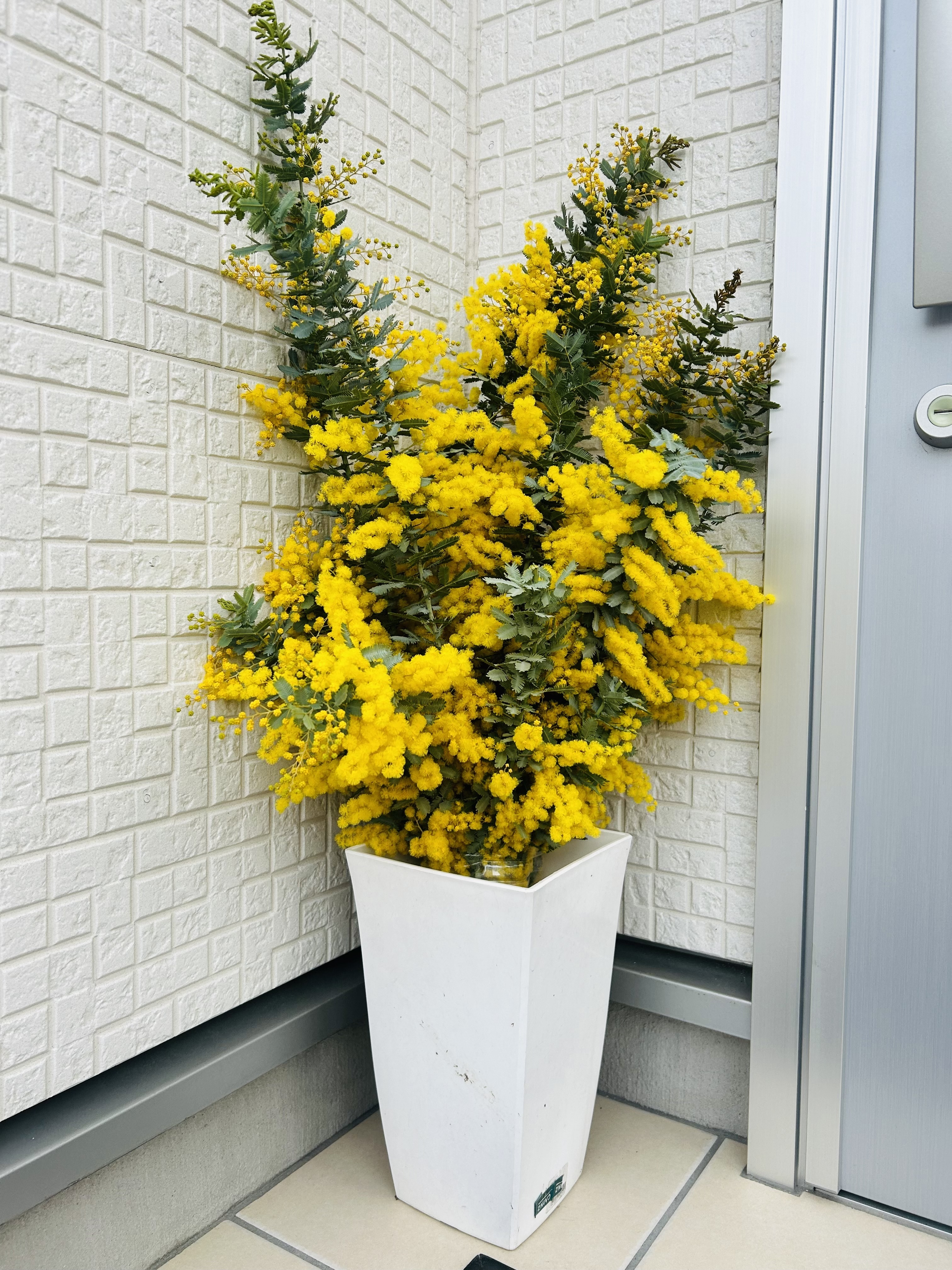 投稿を表示凄い〜🤗玄関が華やかになりますね🥰ミモザの🟡で元気になりそうですですね🤗素敵な飾り方ですね🥰