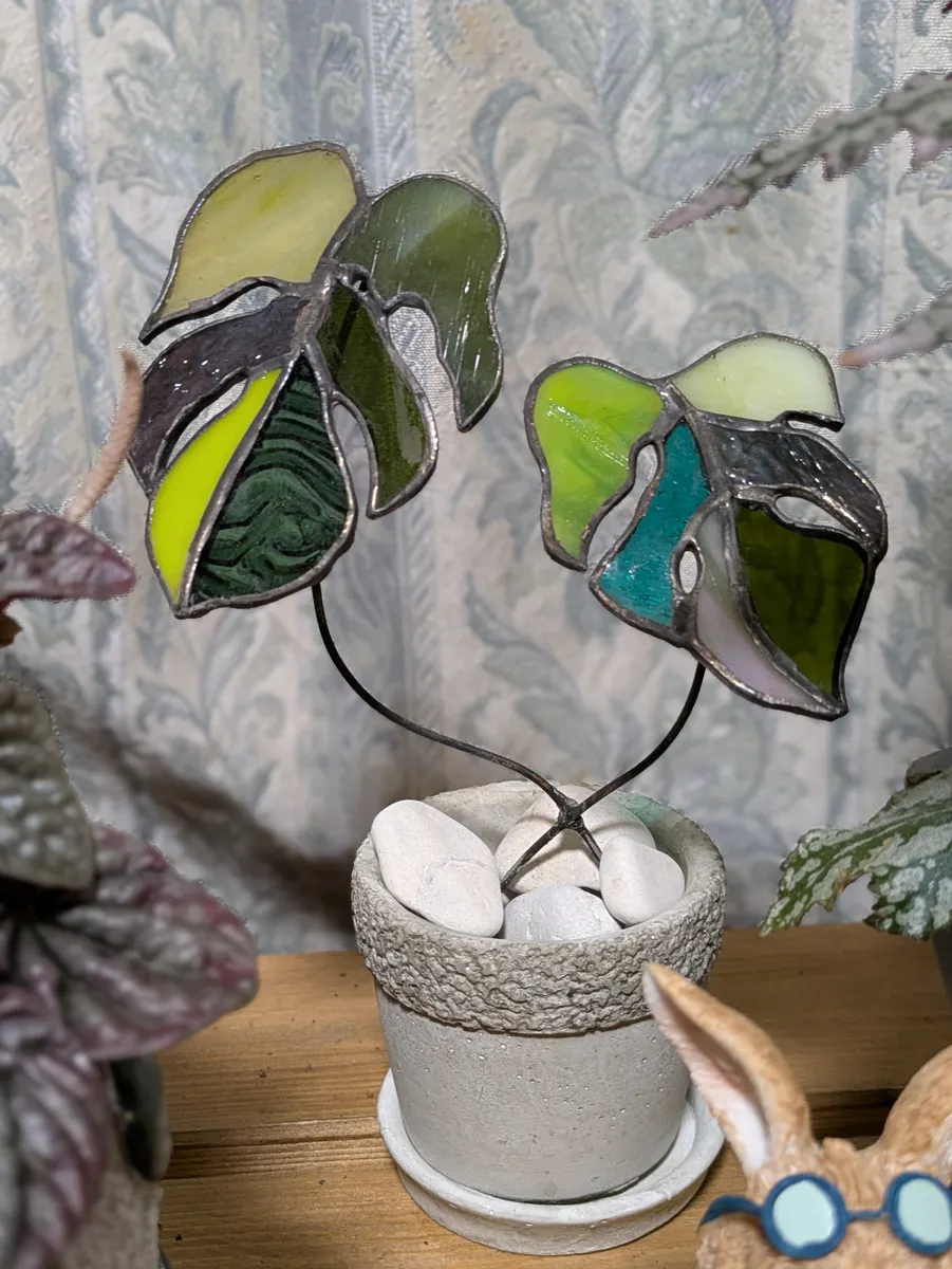 何気に自作のステンドグラス『モンステラ💚』😁🎶💕🙌