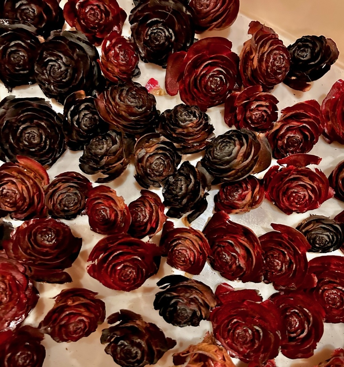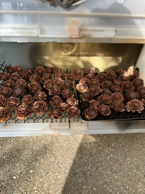 それにしてもストックされてるシダーローズの量❗❗色付けされたシダーローズがこれからどう変身するのか楽しみです♥