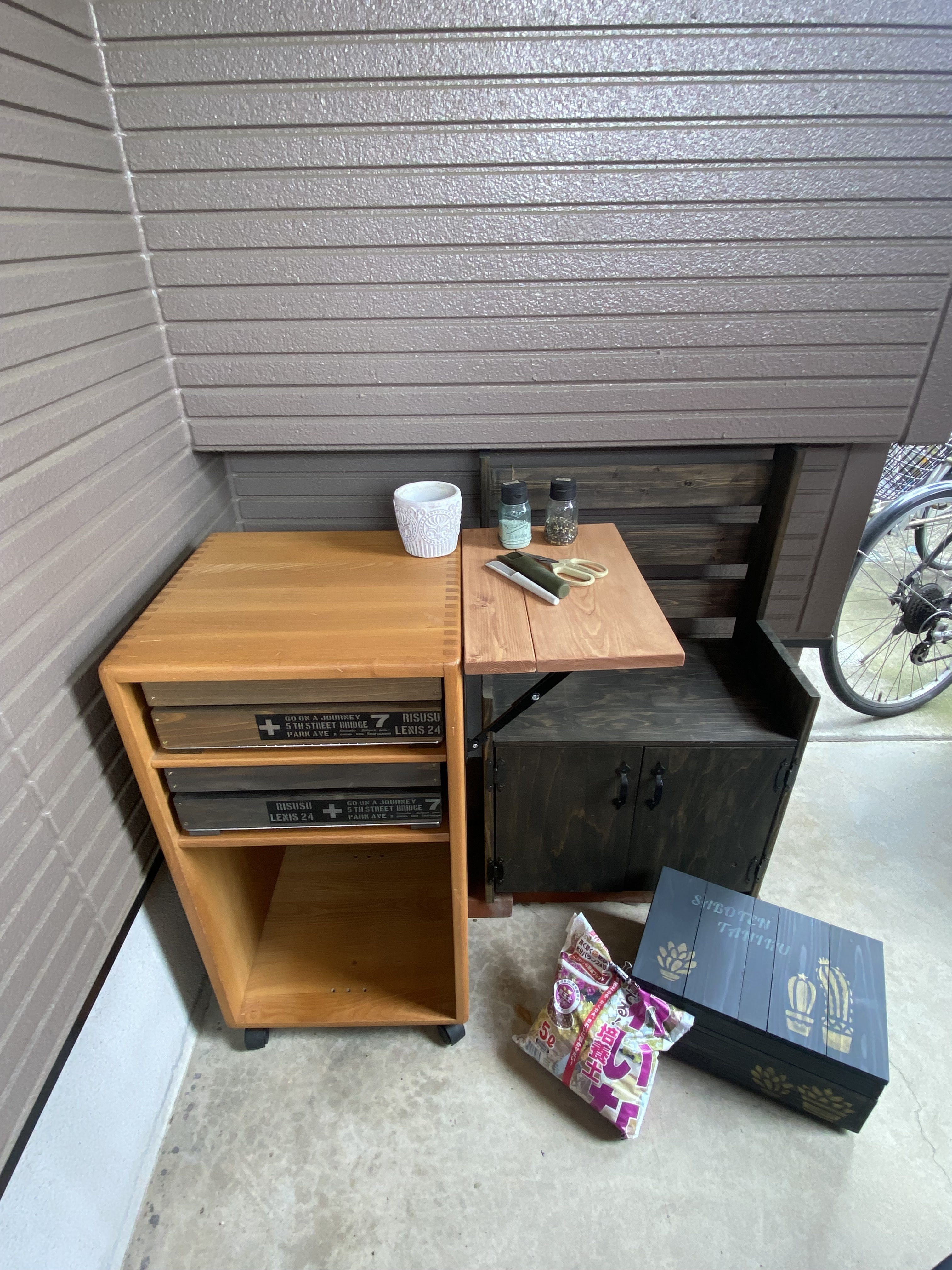 トップ > その他 > 作業台のスペースを広げました😀 吉光 2023/05/13 16:49 作業台のスペースを広げました😀 横型のオーディオラックでした折りたたみ時この作業台でちょっとしたDIY🛠️や多肉のチマチマ作業や植え替え🪴をしてます。立ち仕事に丁度いい高さなんです👌元々は45年前中学生の私がオーディオラックとして使用していた物を縦向きにしてるだけなので作業スペースが狭いのが難点でした😓 折りたたみ棚受け金具で作業スペースをちょっと広くしただけですがこれでまだまだ活躍してくれそうです🤗♬ いいね 共有する 共有する X LINE リンクをコピー コメントする 3 件の返信 (新着順) ミュートしたユーザーの投稿です。 投稿を表示 うさこ 2023/05/14 19:26 吉光さん、ナイスアイデア👍 作業スペース広くなるし、使わない時はたたんでおけるのでいいですね☺️ 昔の物(失礼😅)って丈夫ですよね😊 まだまだ活躍してくれますね♪ いいね 返信する ミュートしたユーザーの投稿です。 投稿を表示 吉光 2023/05/15 01:13 コメントありがとうございます🤗 実はコレだとスペースが狭いのでいよいよ作業台を作ろうかと思案してたんです🤔でもまったくその通りで!昔の物ってとても丈夫に作られてて😅 縦にしても横にして歪みもきしみも一切なく捨てるのも惜しいので🤭リサイクルしてもぅひと頑張りしてもらう事にしました♻️💪😃 いいね 返信する ミュートしたユーザーの投稿です。 投稿を表示 nonchiku〜 2023/05/14 09:20 いいなぁ〜素敵な作業スペース😀 高さは大事ですよね♫ そしてリサイクルも‼️ 使いやすさが1番最高✨ いいね 返信する ミュートしたユーザーの投稿です。 投稿を表示 吉光 2023/05/14 16:56 nonchiku〜さん♬ ありがとうございます🤩 作業スペースはカーポート一番奥の狭いところなので大きくお店広げる訳にもいかず😅とはいえ流石に狭い作業台、プチ拡張でだいぶ作業が捗るようになります☺️雨や夏の強い日差しを遮ってくれてるスペースなので重宝してます🥰 ラックは約半世紀働かされてお疲れでしょうけど😉もぅひと仕事頑張って貰わねば💪🤭 あ!そうそう♪そうなんですよね♬ 高さが大切☘️ 腰が痛くなりづらい高さなんです🙆♀️ いいね 返信する ミュートしたユーザーの投稿です。 投稿を表示 しょうしん 2023/05/13 18:12 わっ?! 素敵な作業スペースですね。 そのちょこっとがとても快適に作業できるようになりますよねー。 いいね 返信する ミュートしたユーザーの投稿です。 投稿を表示 吉光 2023/05/13 20:03 しょうしんさん♬ ありがとうございます😍 そうなんです❣️ちょこっと置いておくスペースが無くてベランダ収納庫、更にミニテーブルを利用したりしてました😅これで少しは作業し易くなると思います👍 いいね 返信する