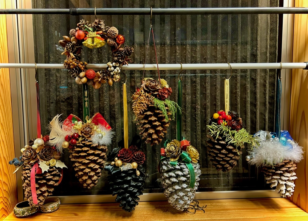 松ぼっくりは、リースとかの、『パーツ』と思っていましたが、主役も、ありなんだぁ〜😱💦と、実感🥰👍